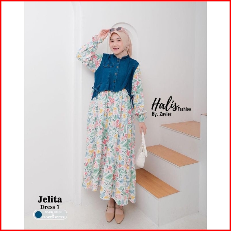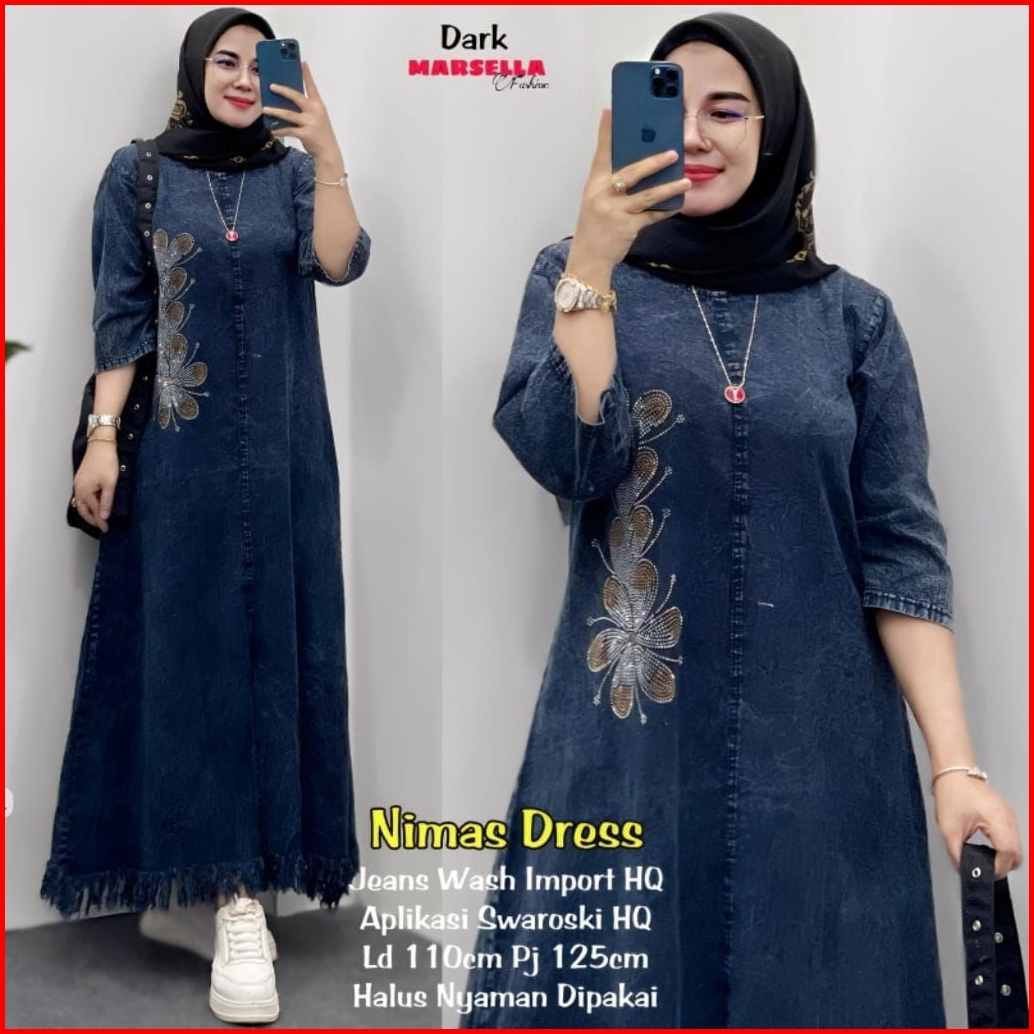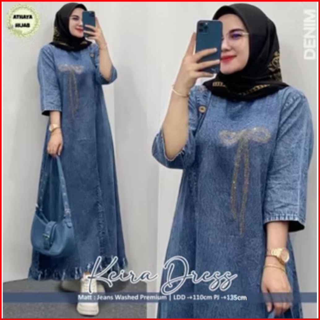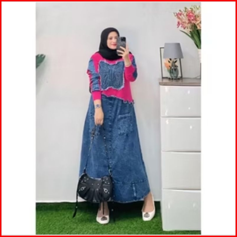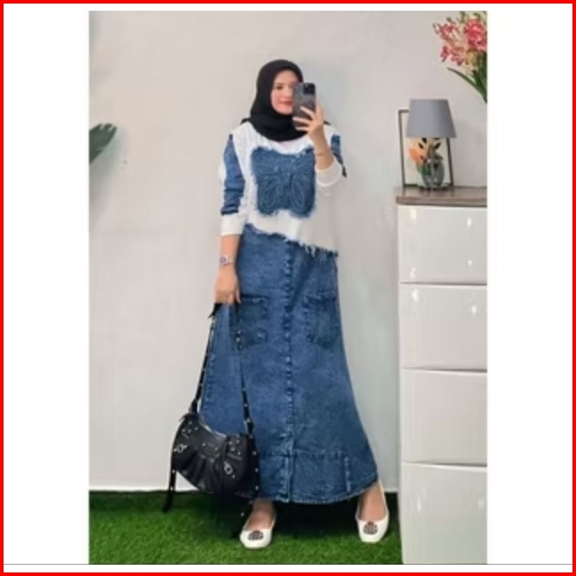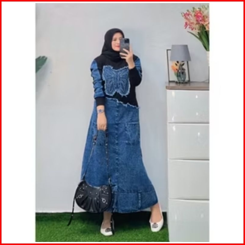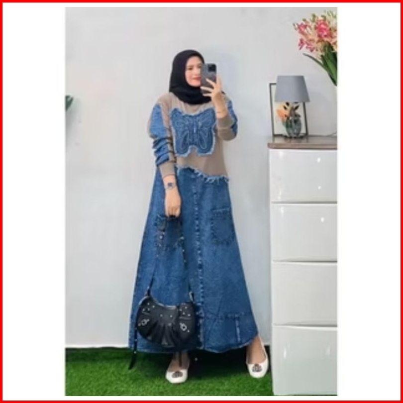 Midi Dress Kupu Terbaru Mix Jeans Kekinian Viral Dress Jeans Terbaru Midi Jeans Terbaru