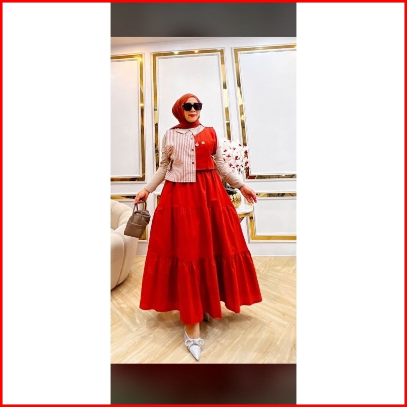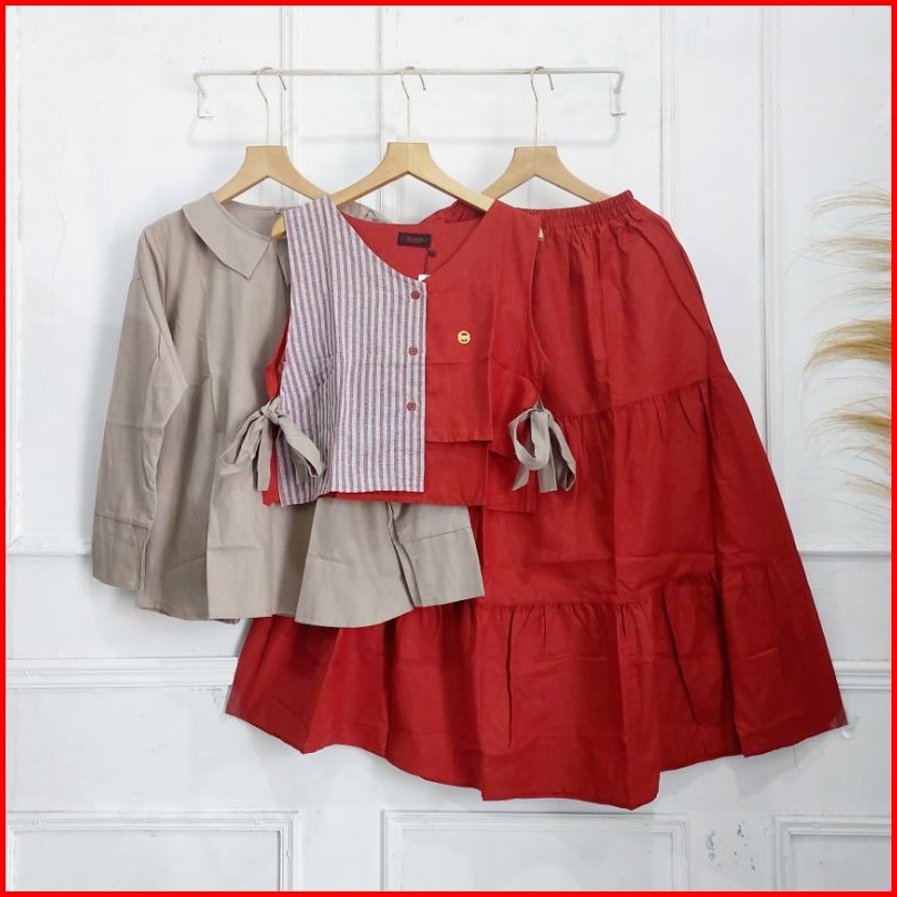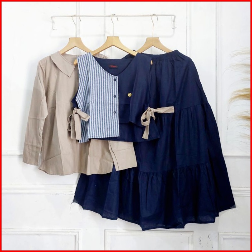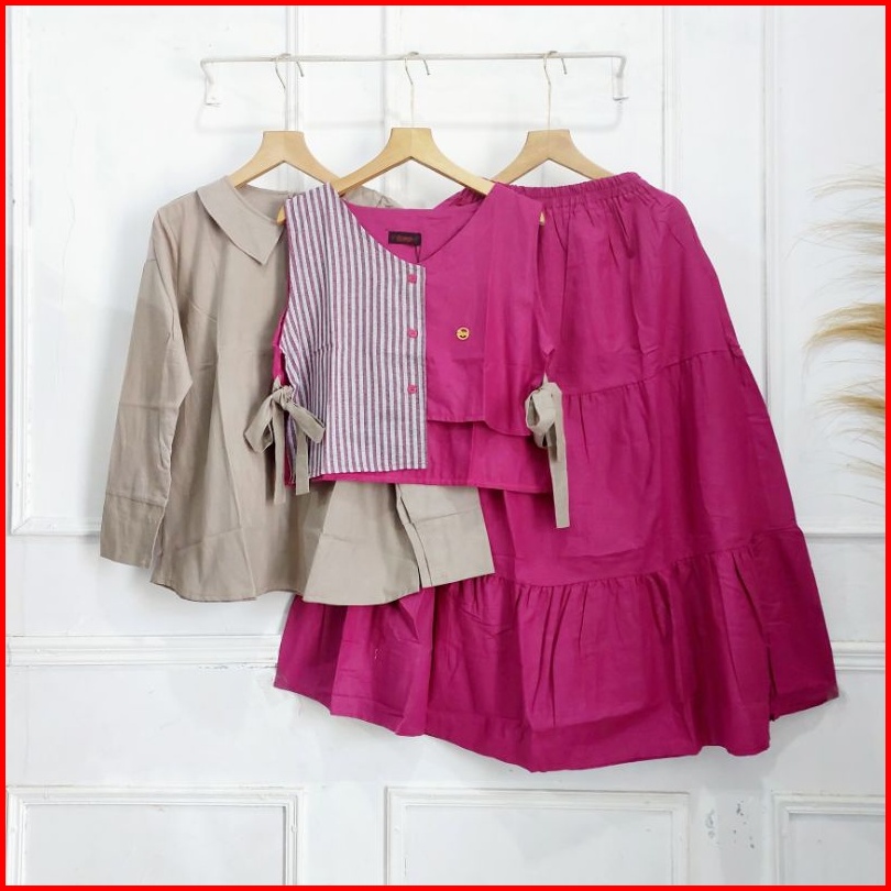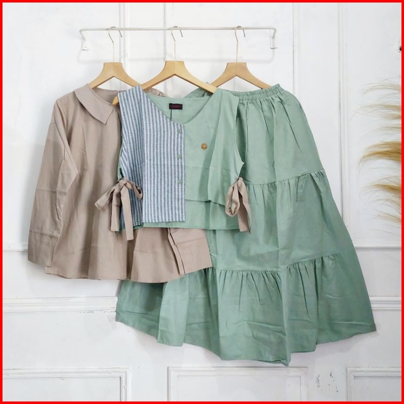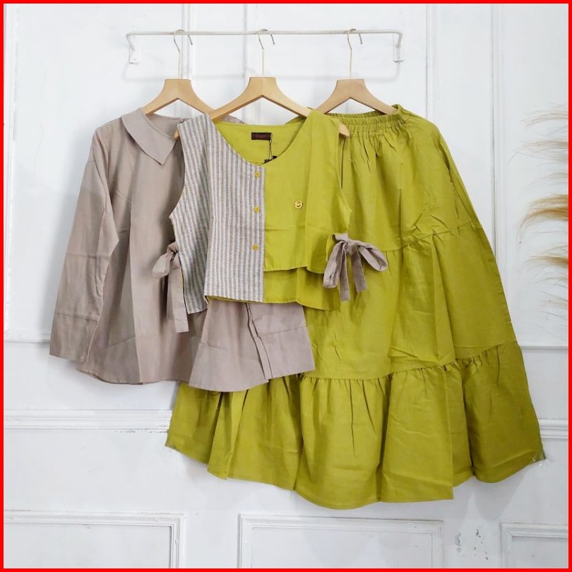 3 In 1 Set Rok Vest Kancing Setelan Rok Set Vest Salur