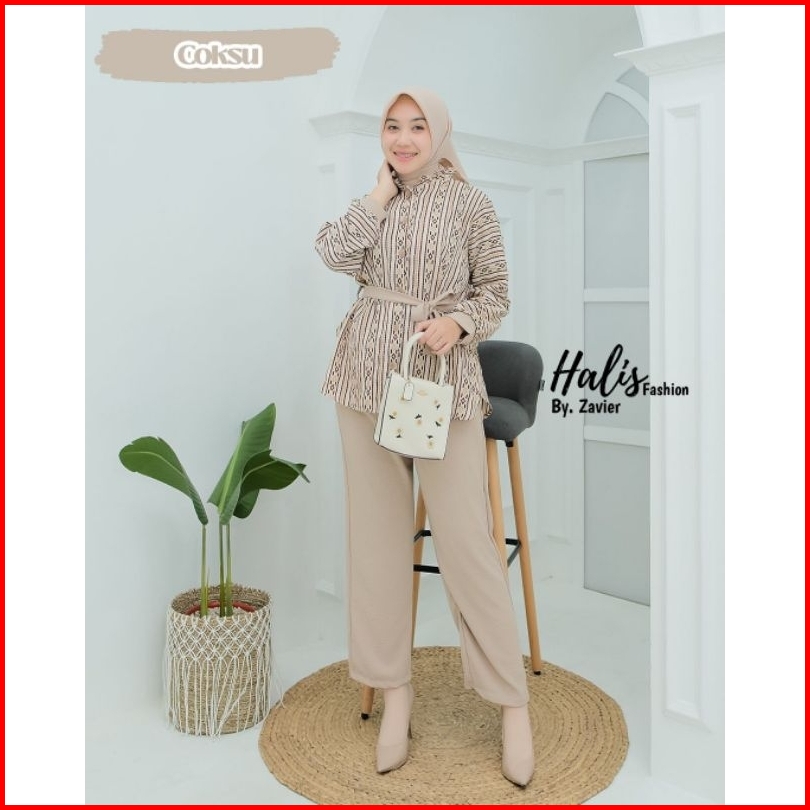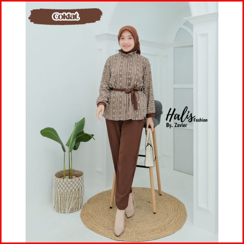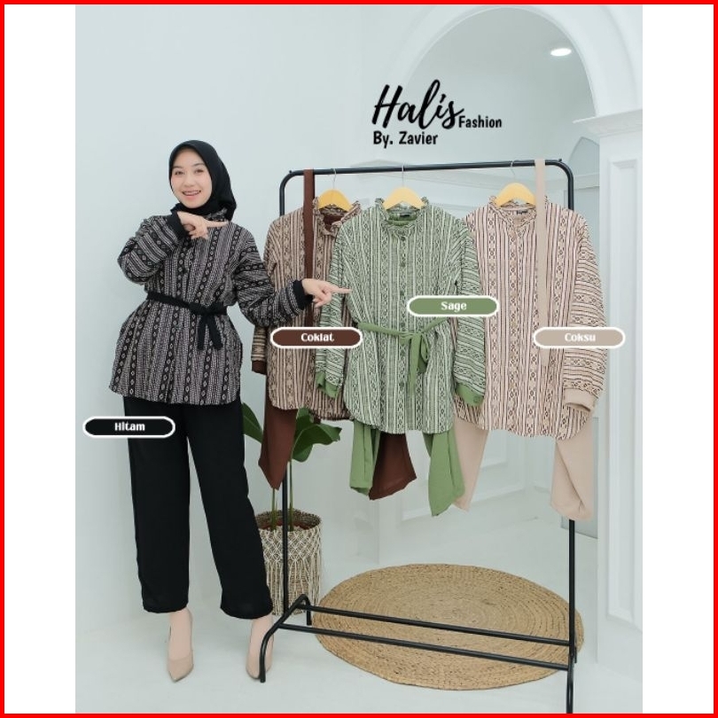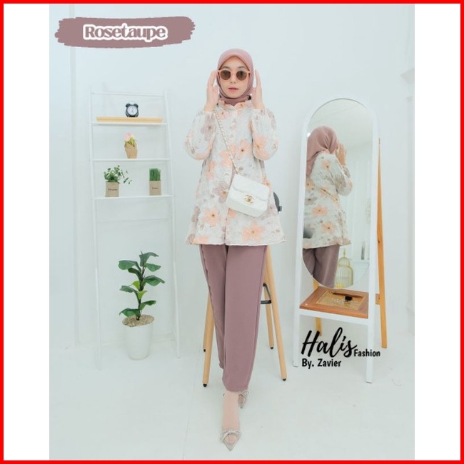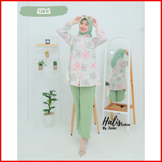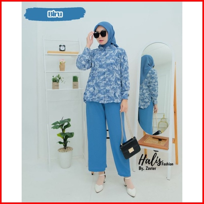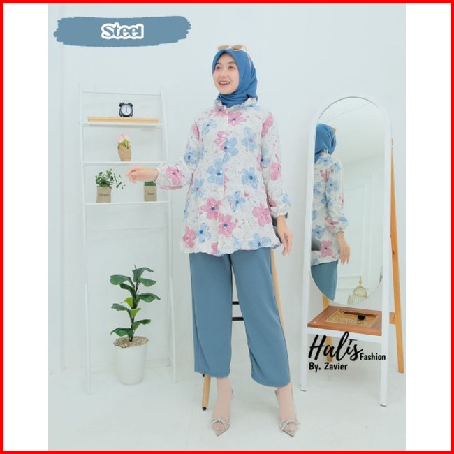 Halis Fashion Ori Set Celana Crinkle Bunga By Halis One Set Crinkel Set Hijab Voal