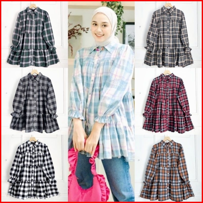 Blouse Kotak Katun Kemeja Kotak Katun Mix Flanel Atasan Tartan Kotak Lembut