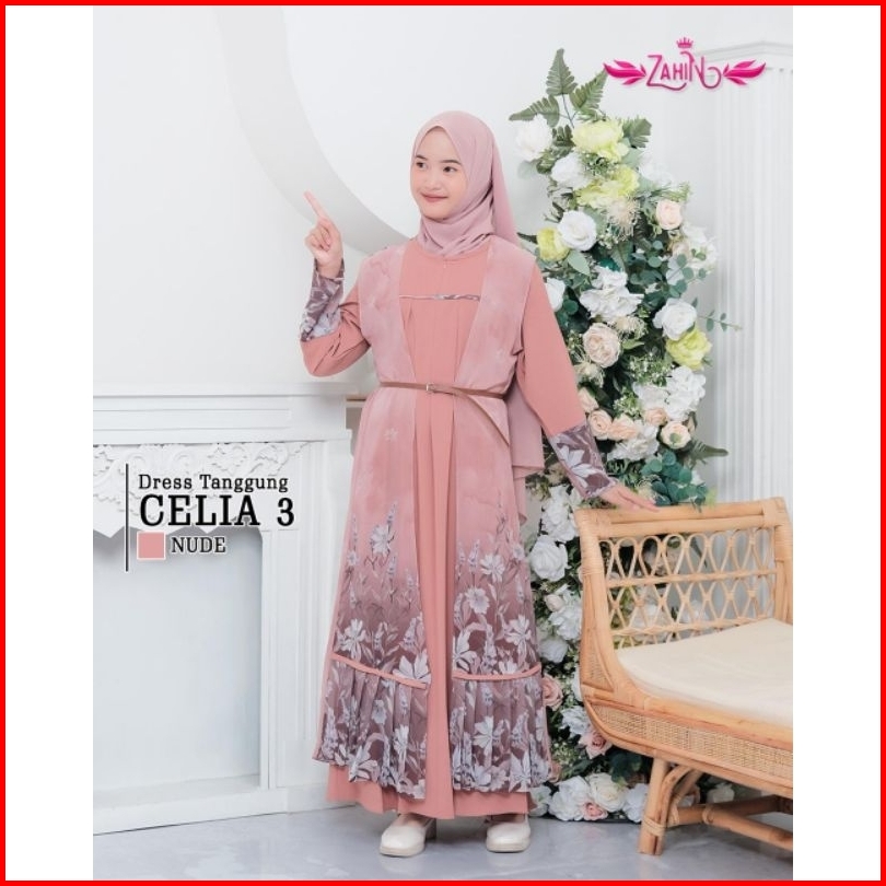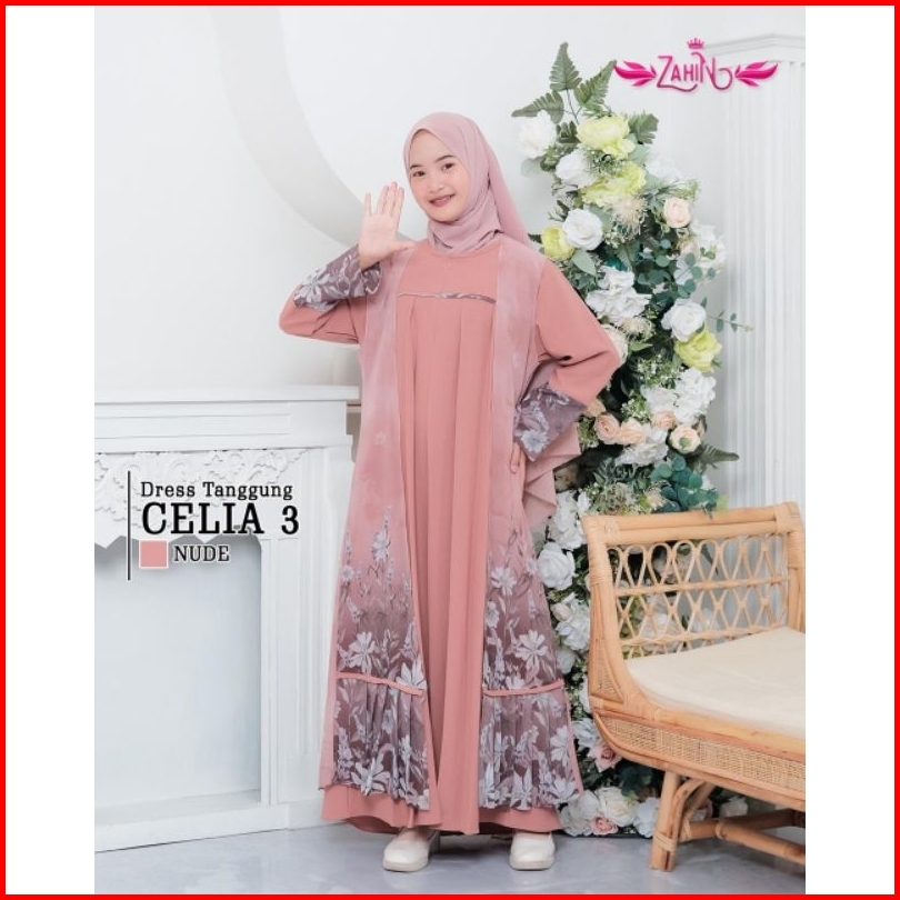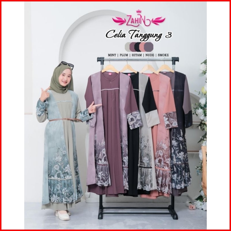 Celia Haura Set Gamis Outer Anak Kekinian Fashion Terbaru Remaja By Zahin Set Outer Wanita Gamis Set Outer Mix Ceruty Ba