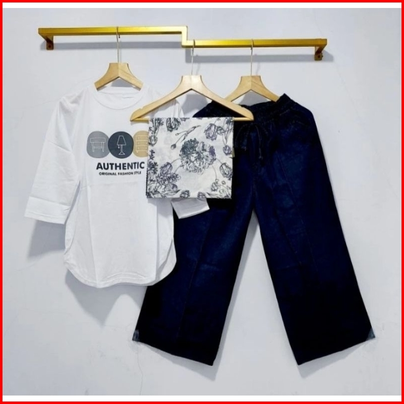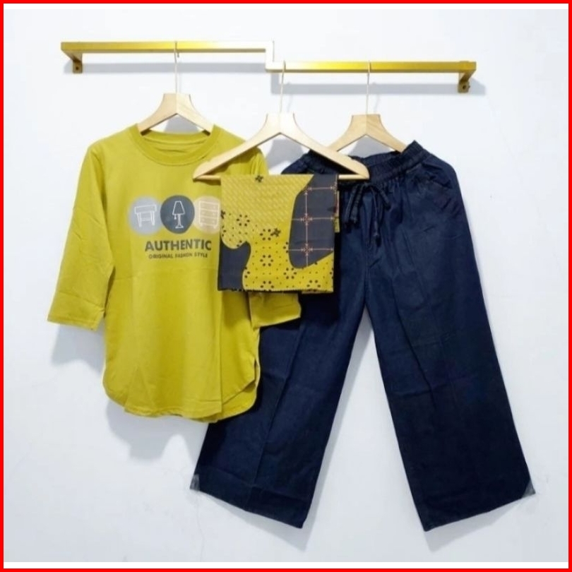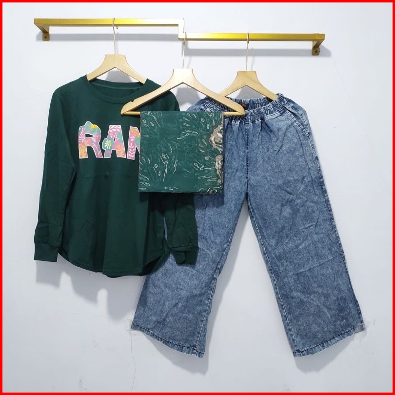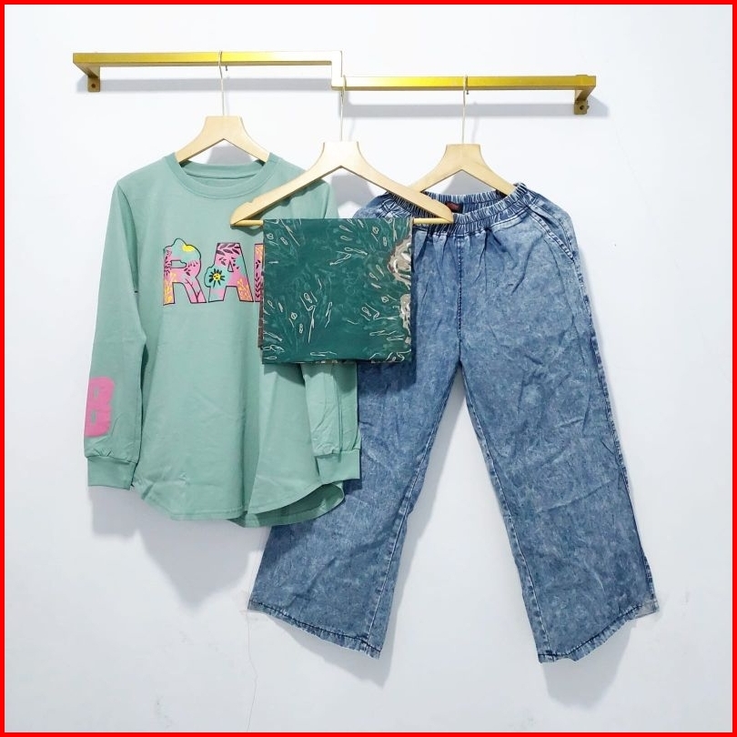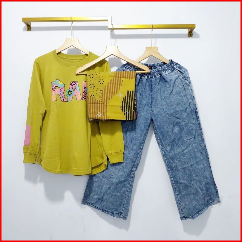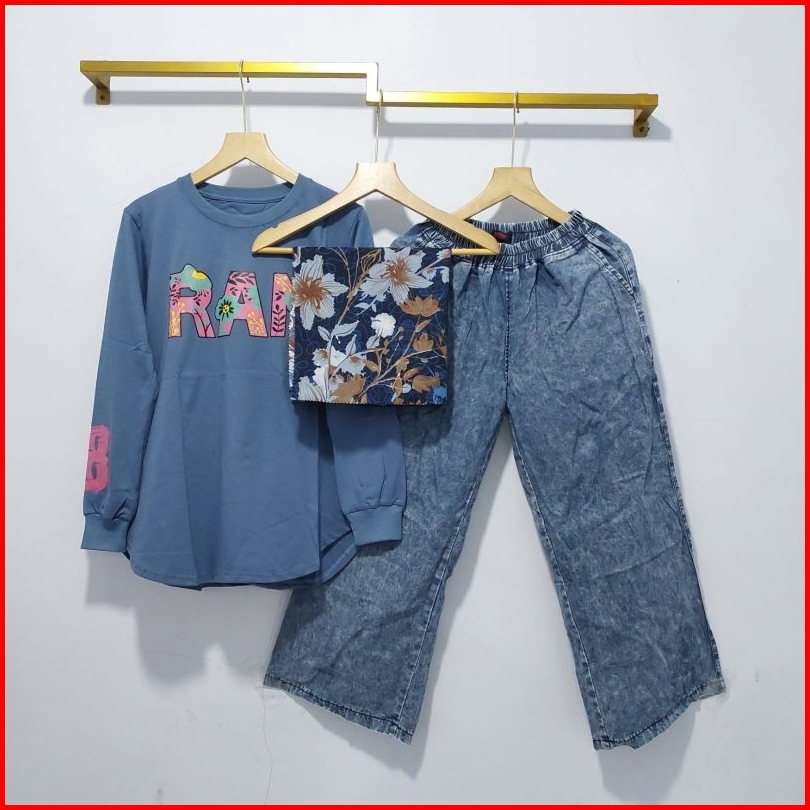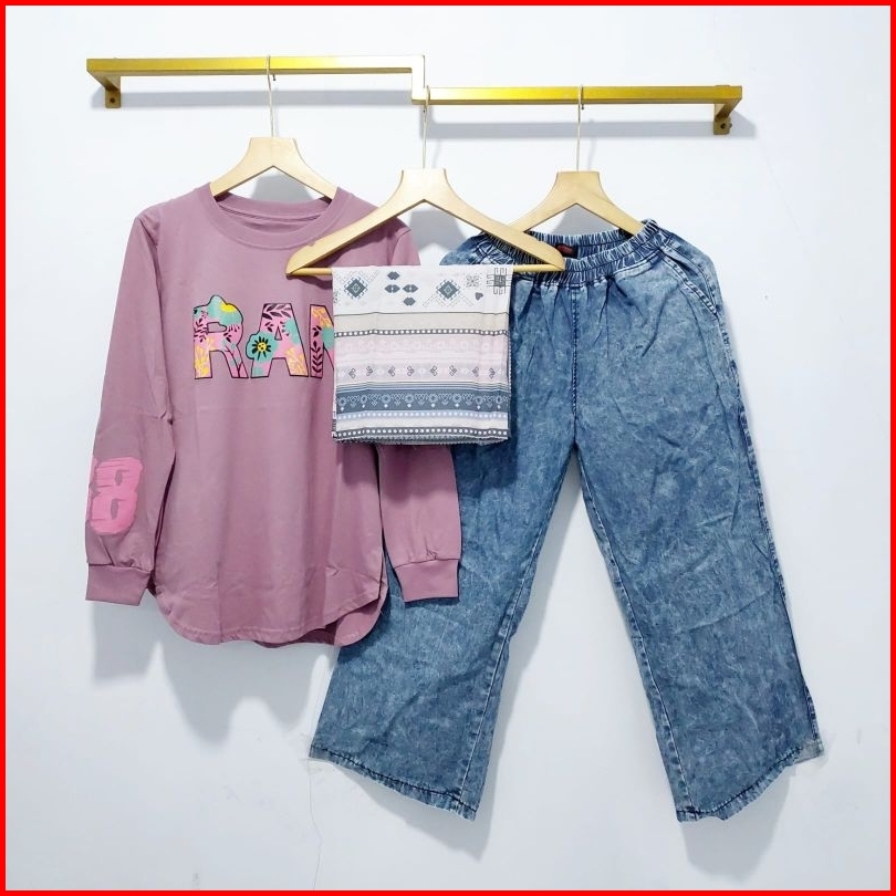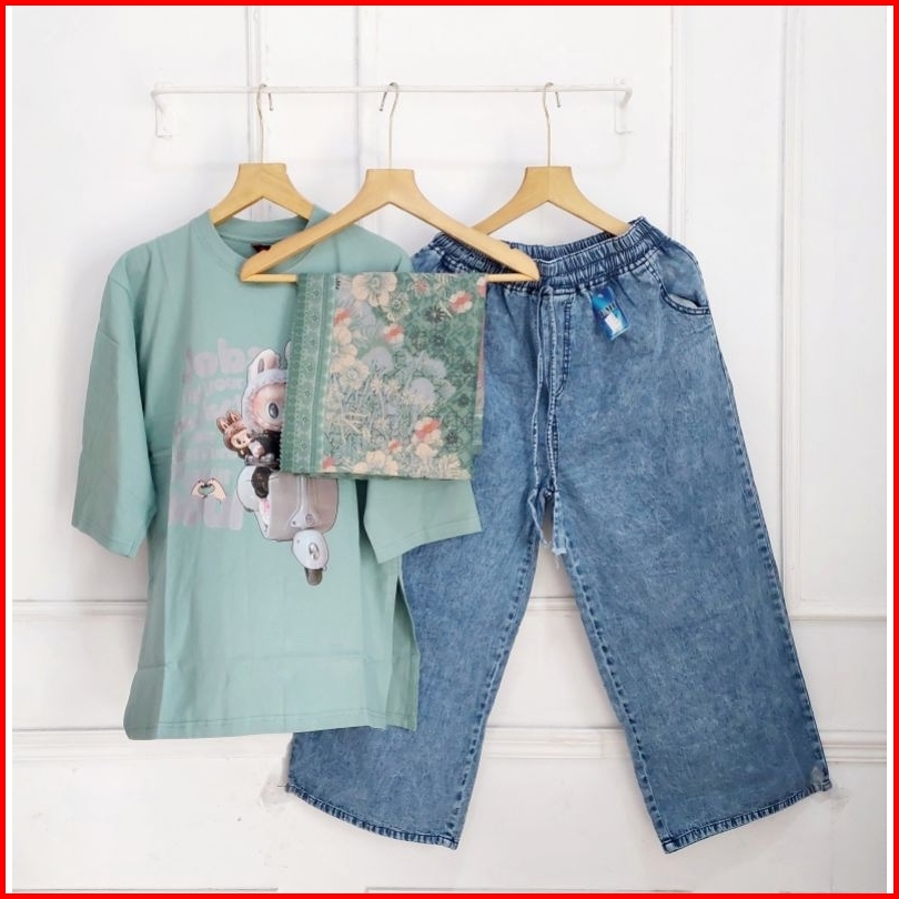 Setelan Kulot Jeans Wash Kaos Combedl Hijab Vo