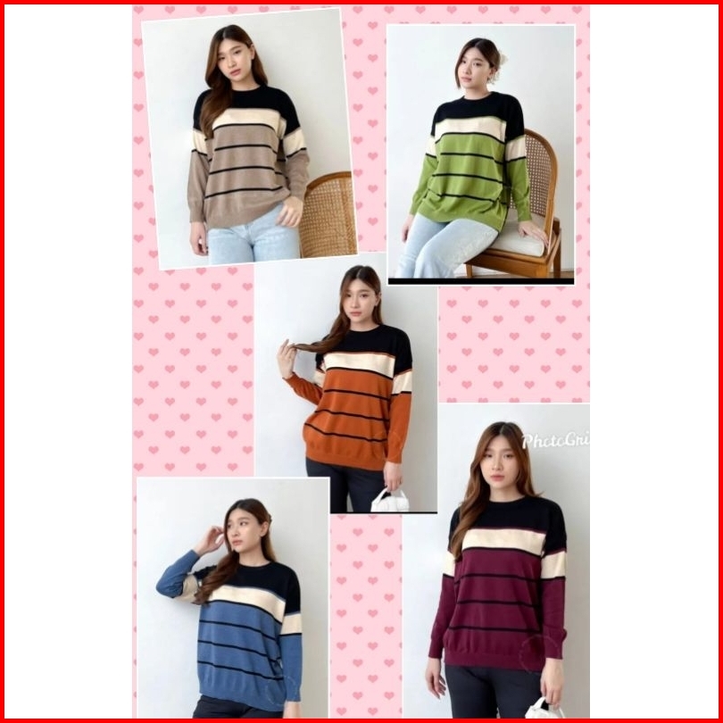Korean Blouse Rajut Kekinian Atasan Bahan Rajut All Size Sweater Rajut