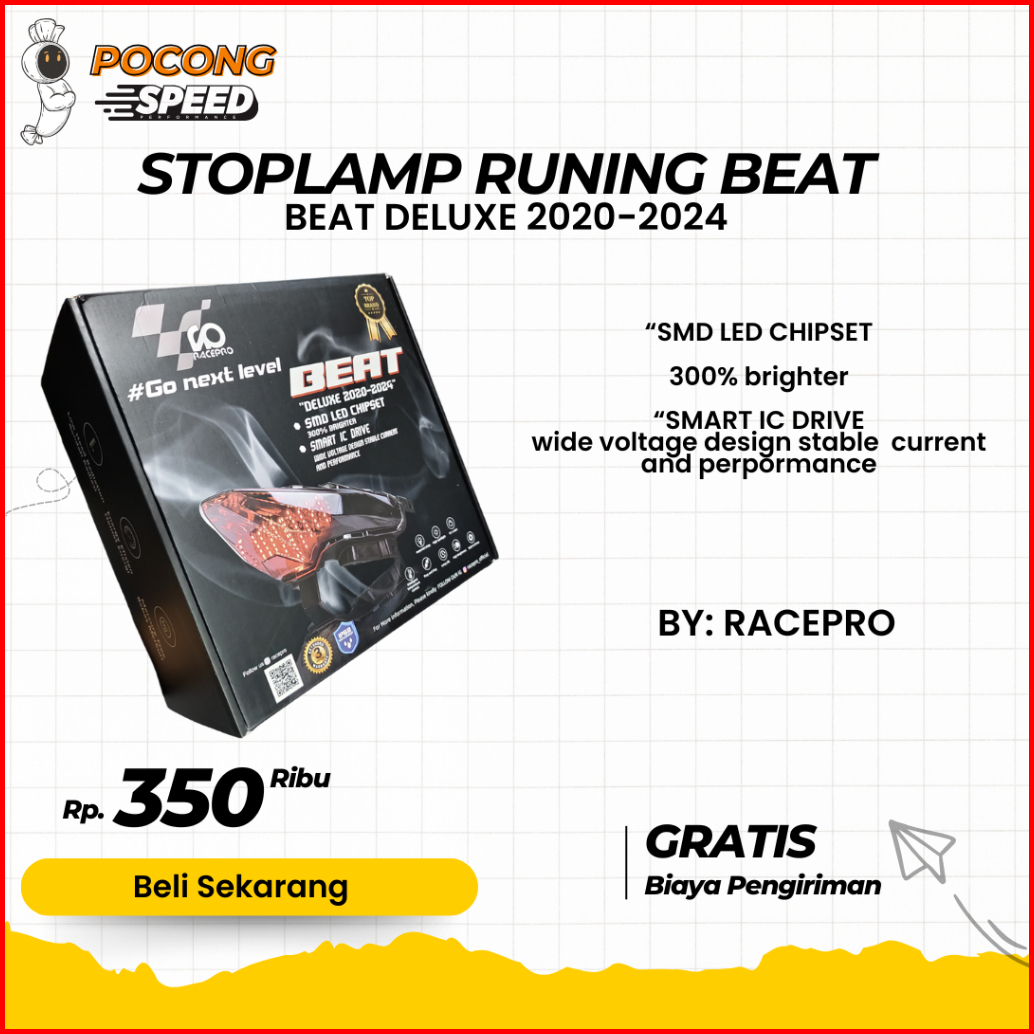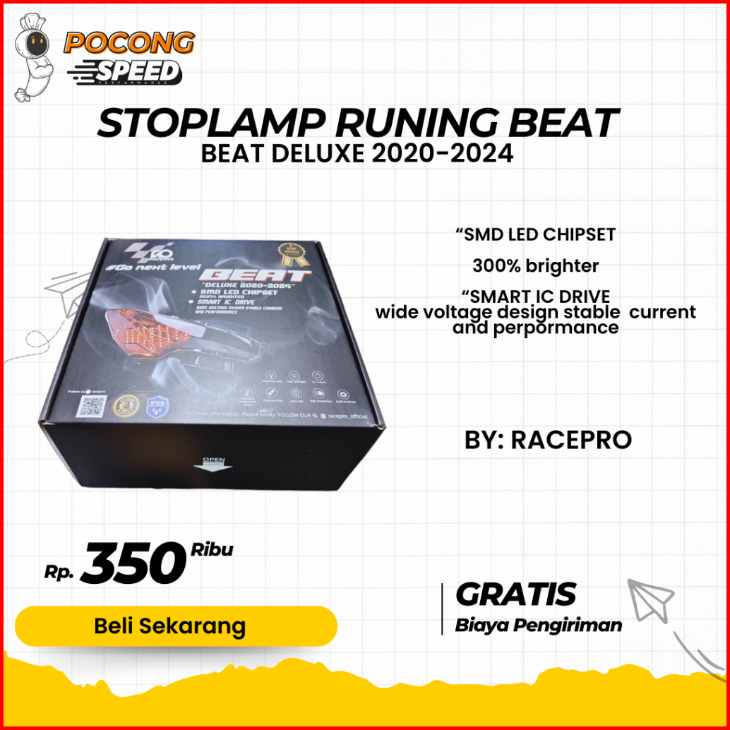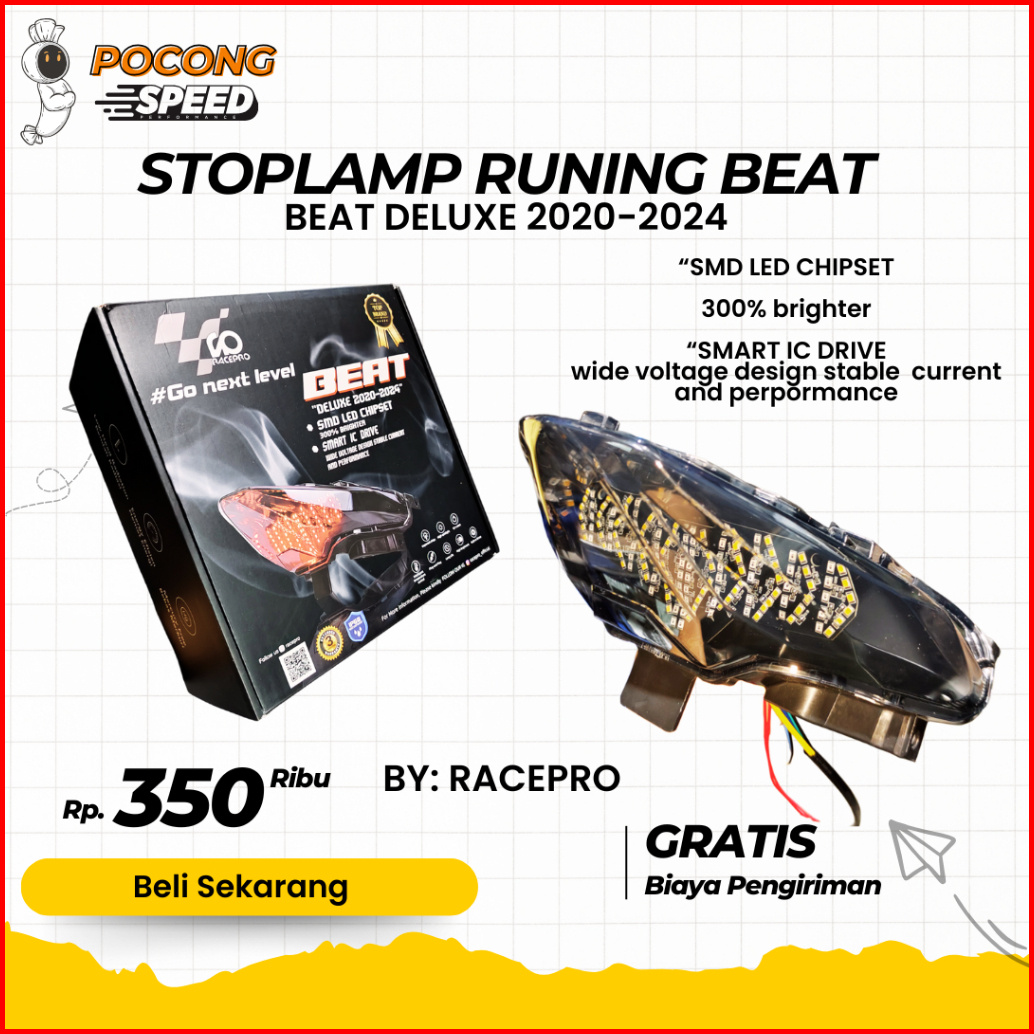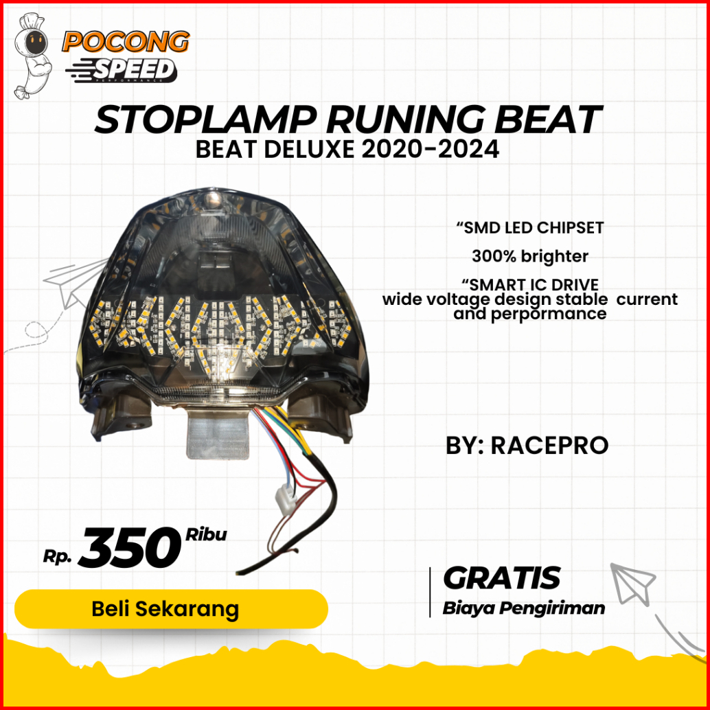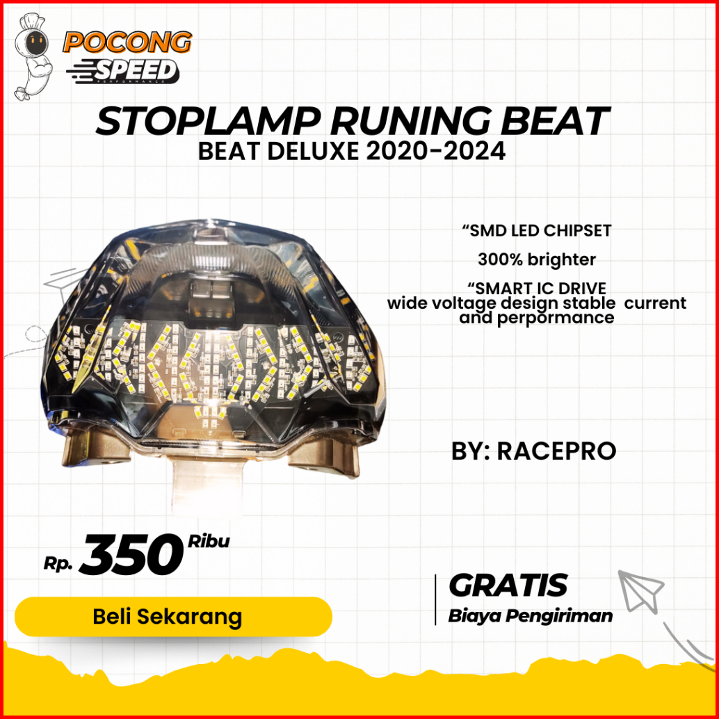 Lampu Belakang Beat Deluxe Runing 2020-2024 Stoplamp Beat Race Pro 3 In 1 8 Mode Runing Merah Lampu Stop Beat Lampu Rem
