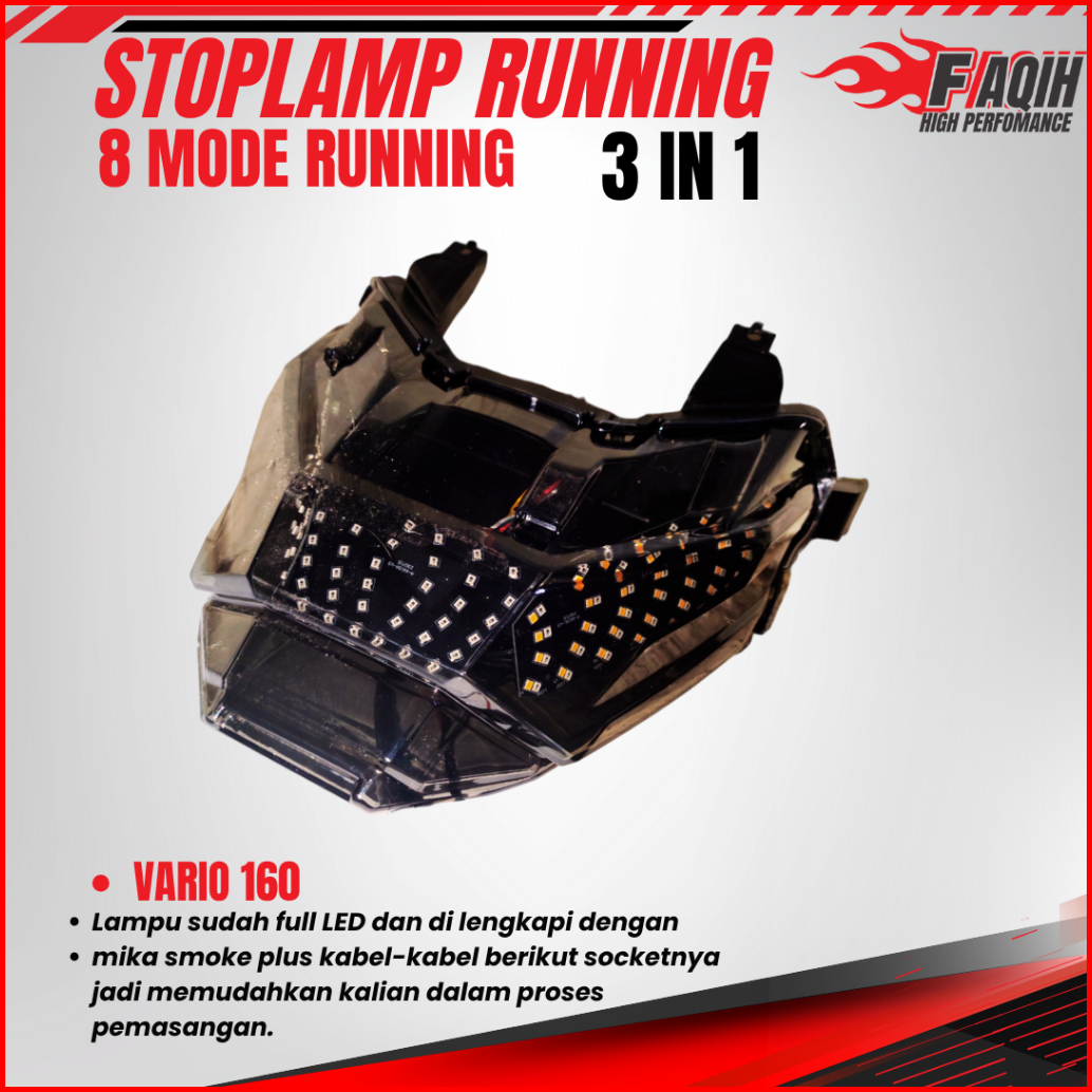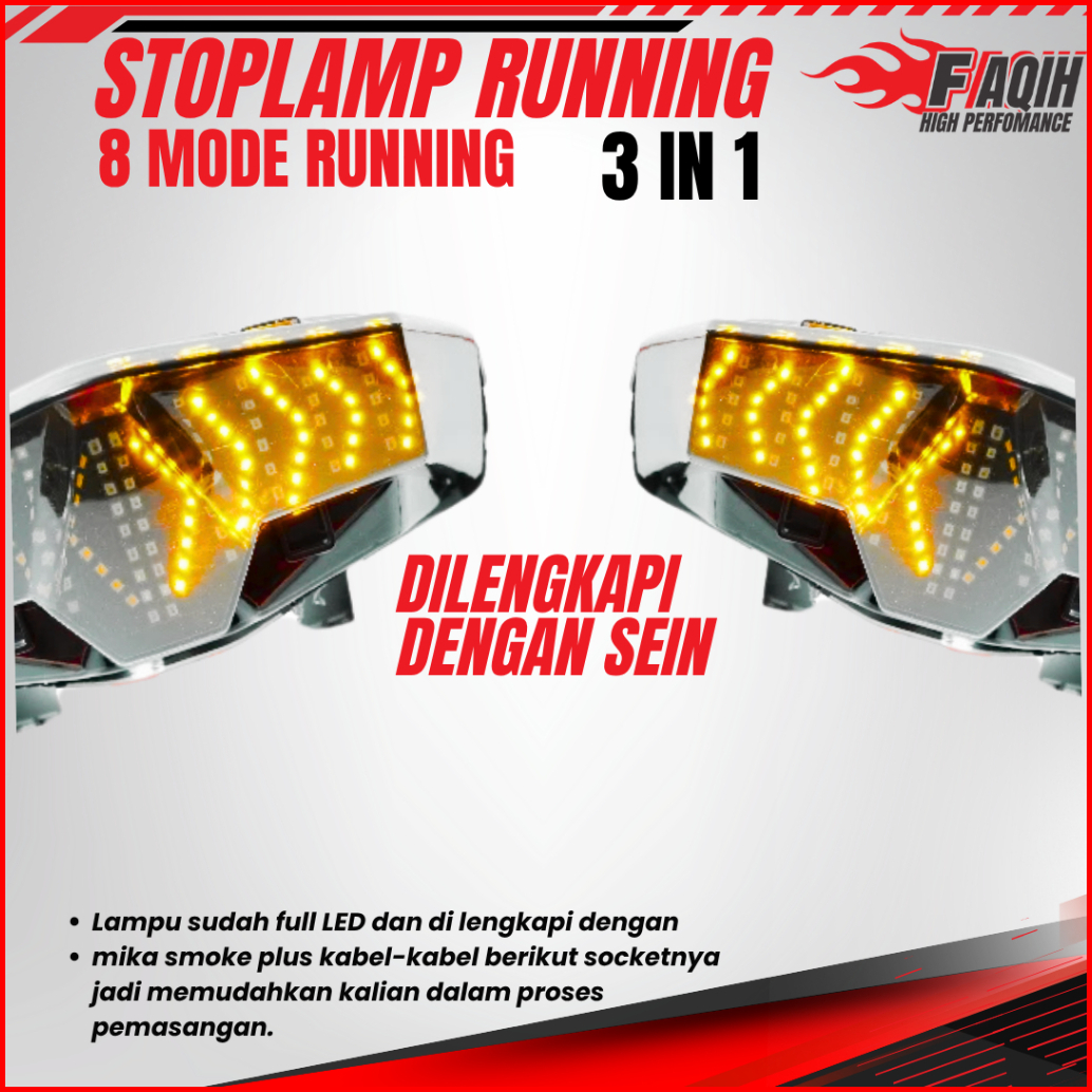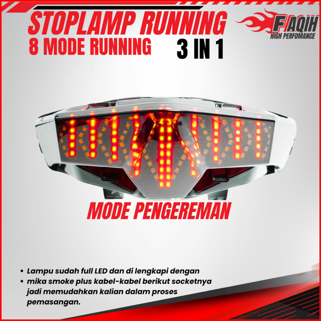 Lampu Belakang Beat Deluxe Runing 2020-2024 Stoplamp Beat Race Pro 3 In 1 8 Mode Runing Merah Lampu Stop Beat Lampu Rem
