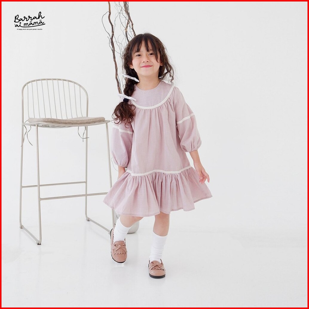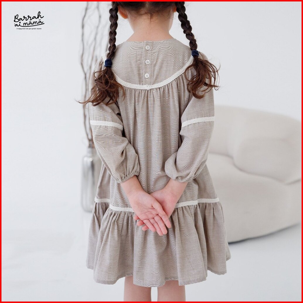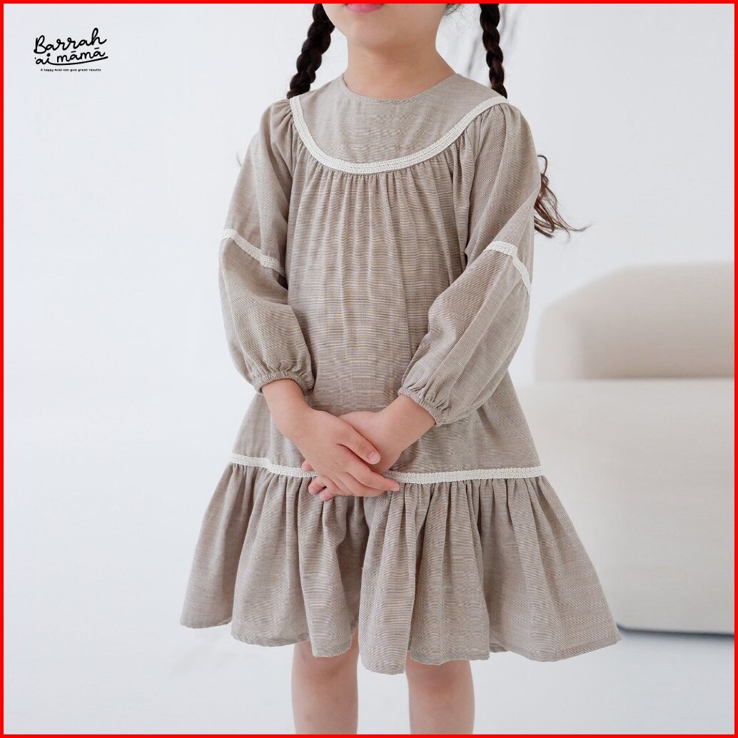 Barrahaimama - Dress Anak Perempuan Vintage Renda Lengan Panjang Bahan Katun Polos
