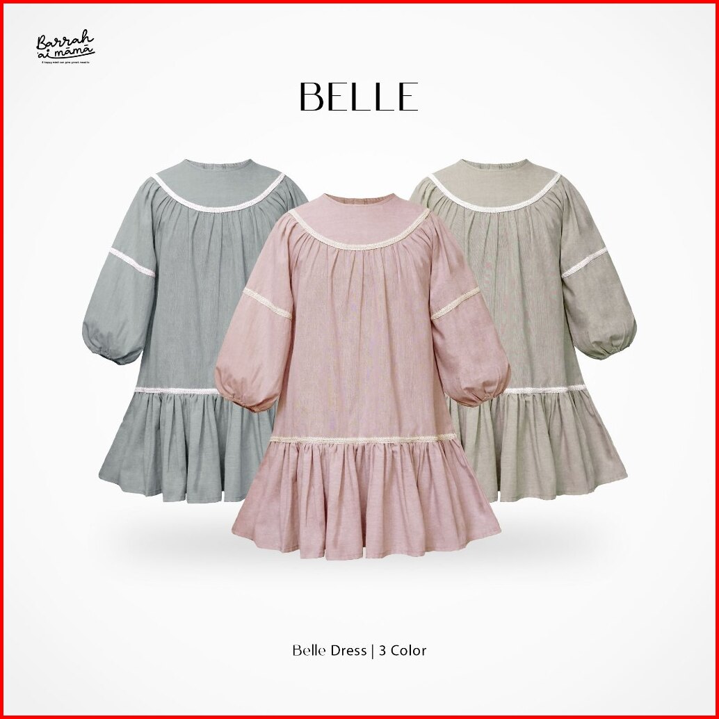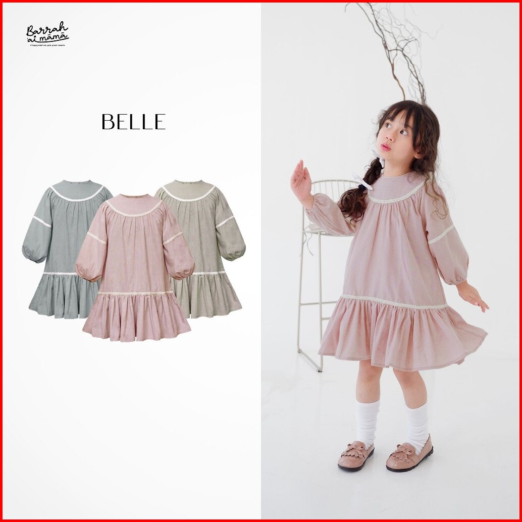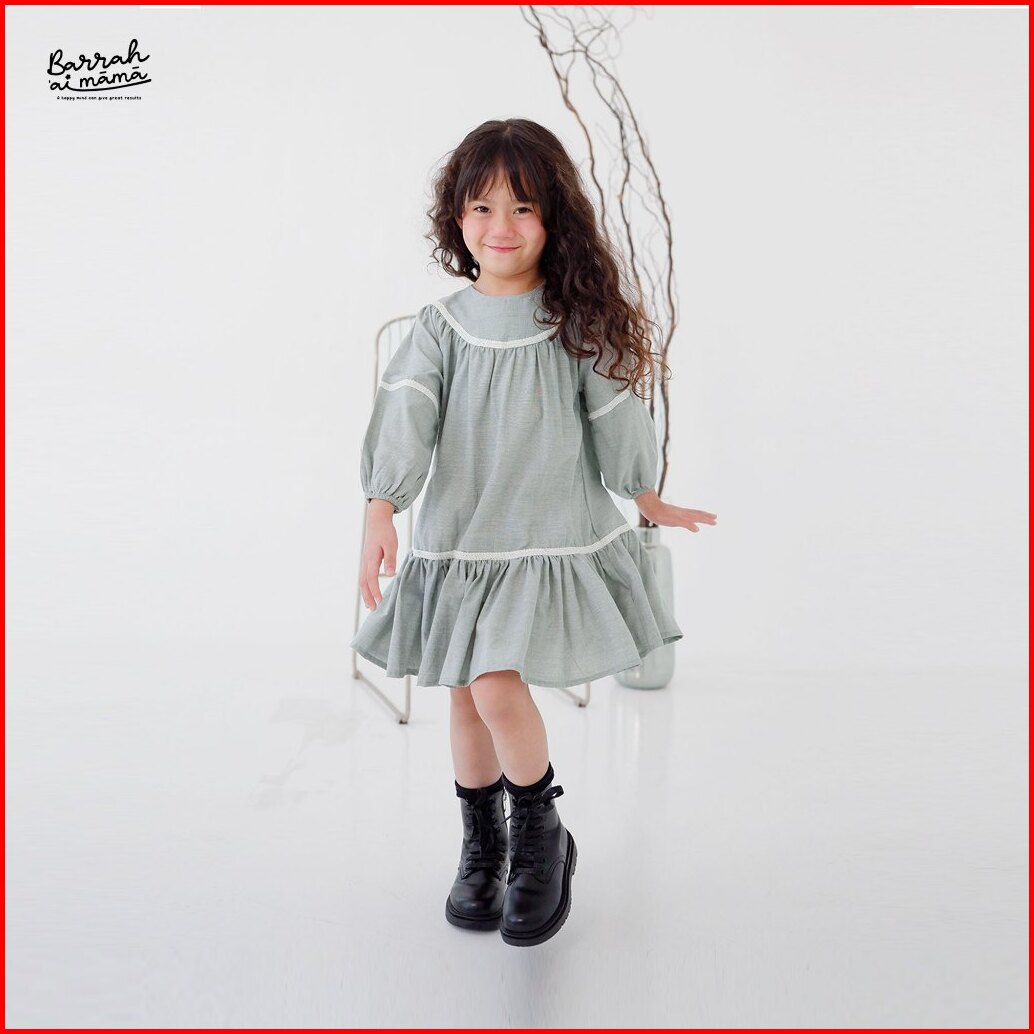 Barrahaimama - Dress Anak Perempuan Vintage Renda Lengan Panjang Bahan Katun Polos