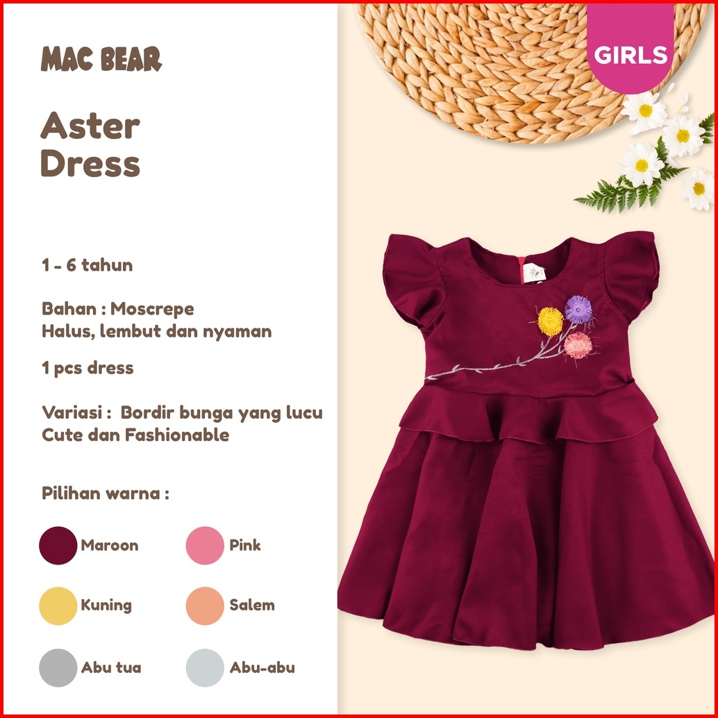 Macbee Dress Anak Perempuan Princess Collection Aster 6 Bulan - 6 Tahun