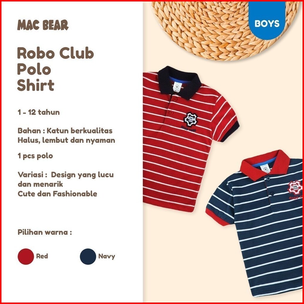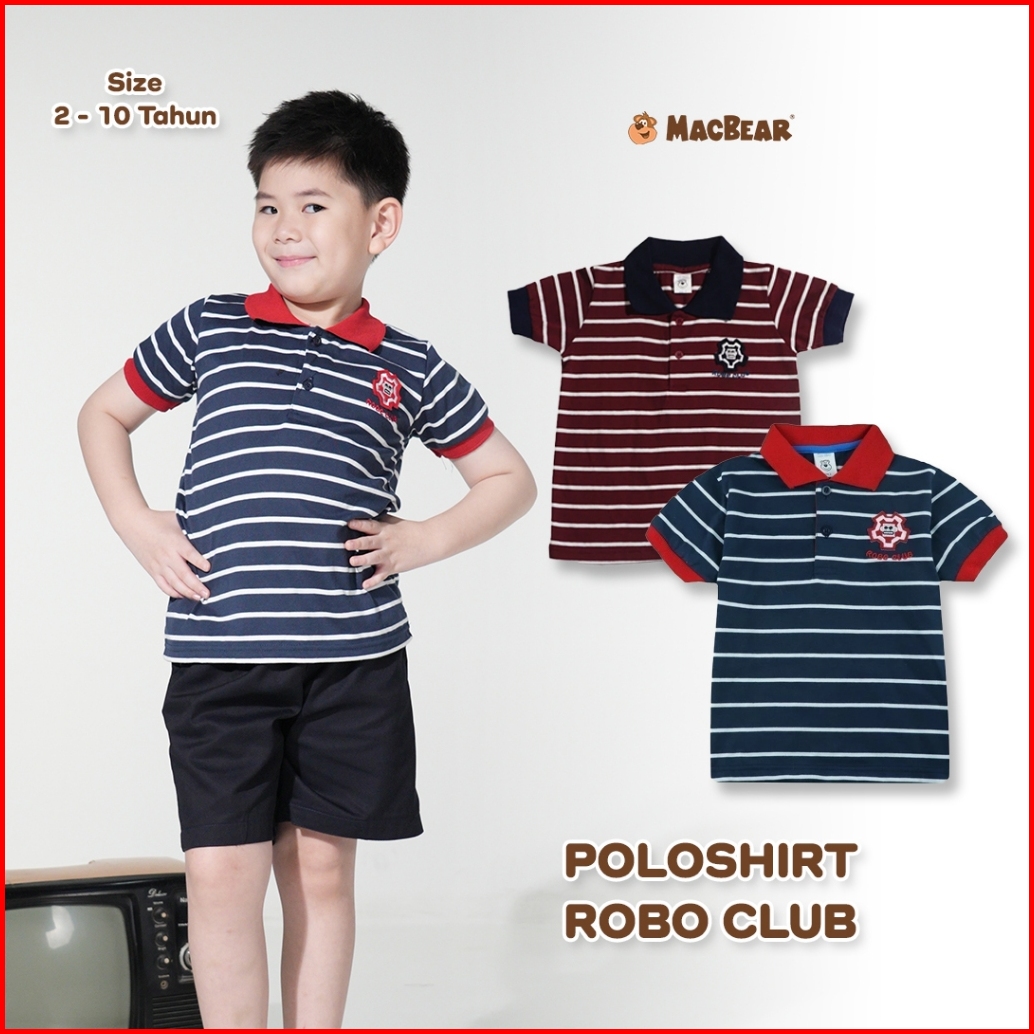 Macbear Baju Anak-remaja Laki-laki Polo Shirt Stripy Collection Robo Club Size 2 - 12 Tahun