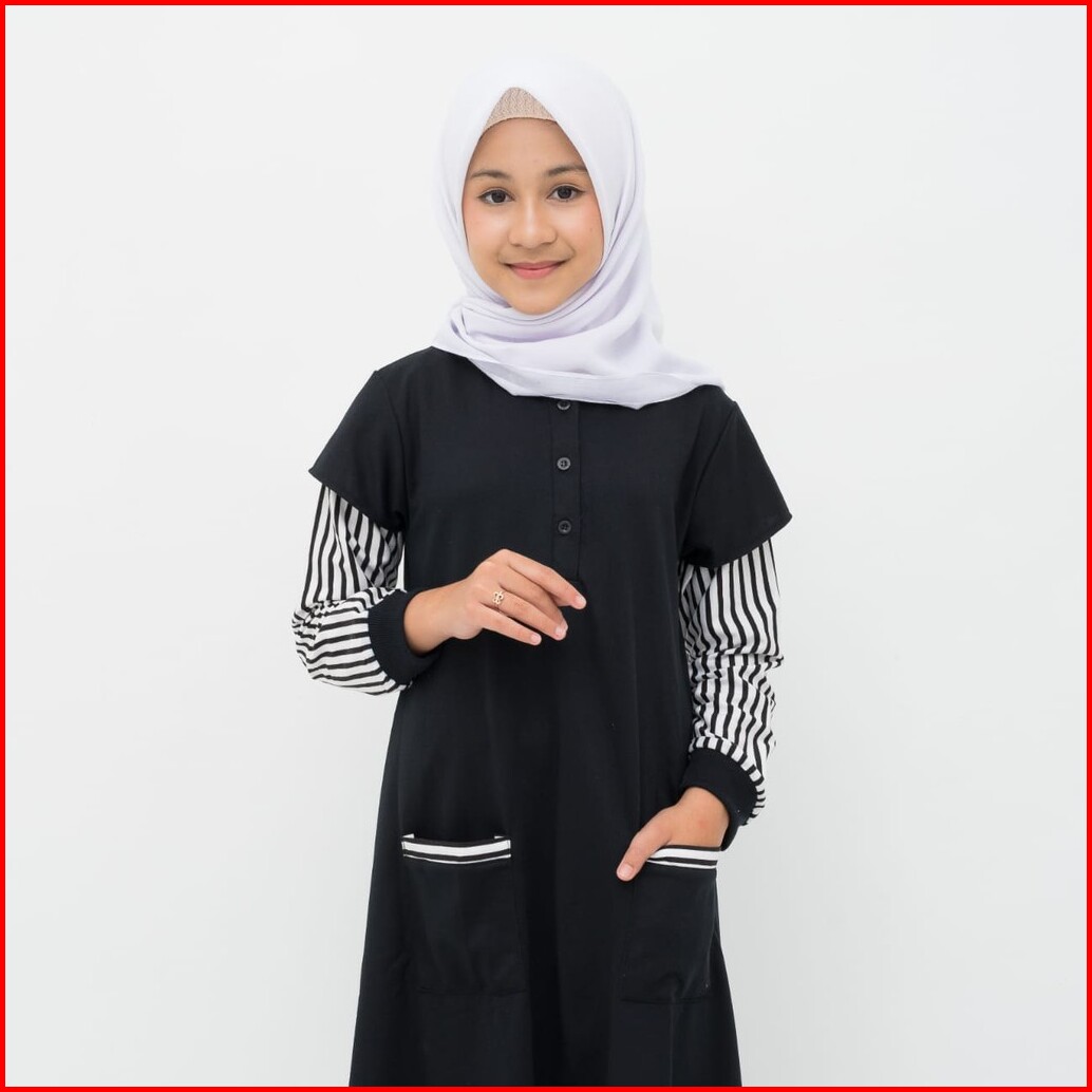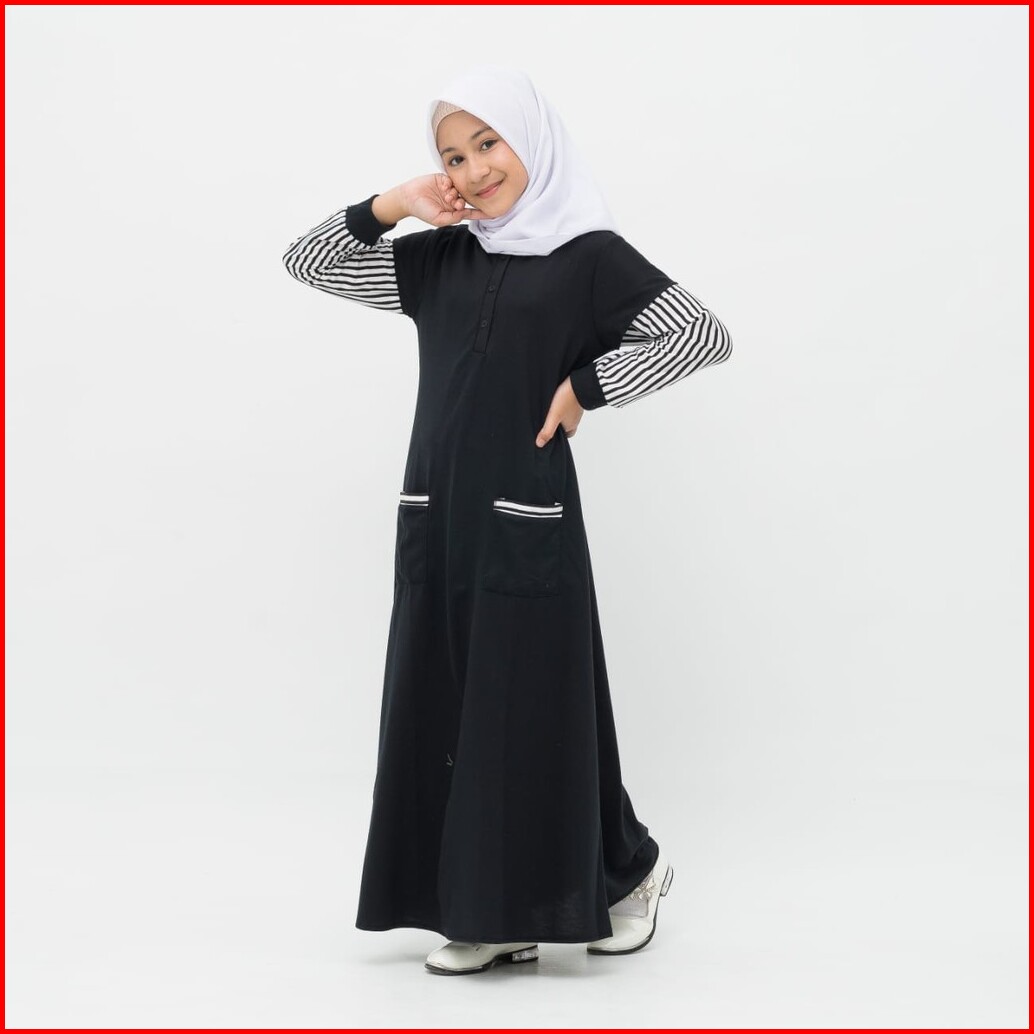 Applekidz Gamis Anak Perempuan Tanggung Wing Line Black