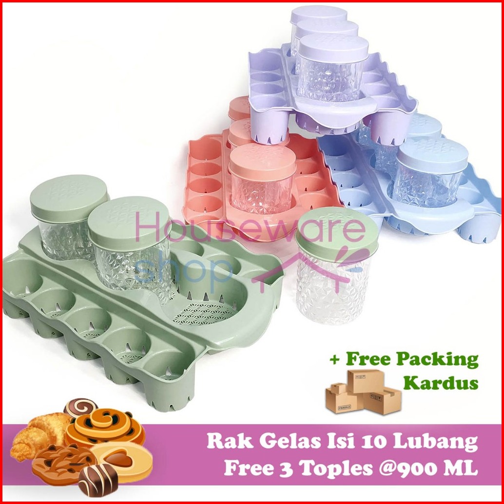 Rak Aqua Gelas 10 Lubang 3pcs Toples Nampan Beckel Kombinasi Toples Dan Wadah Gelas