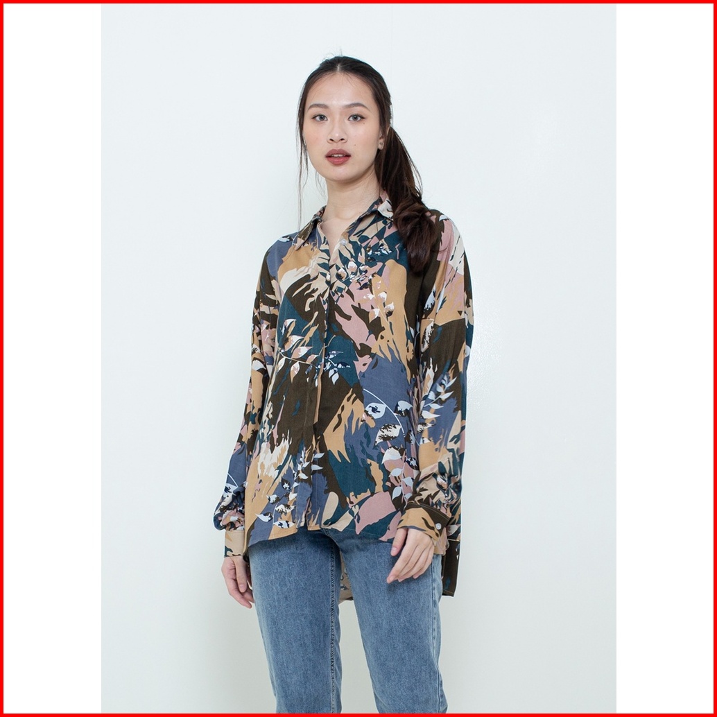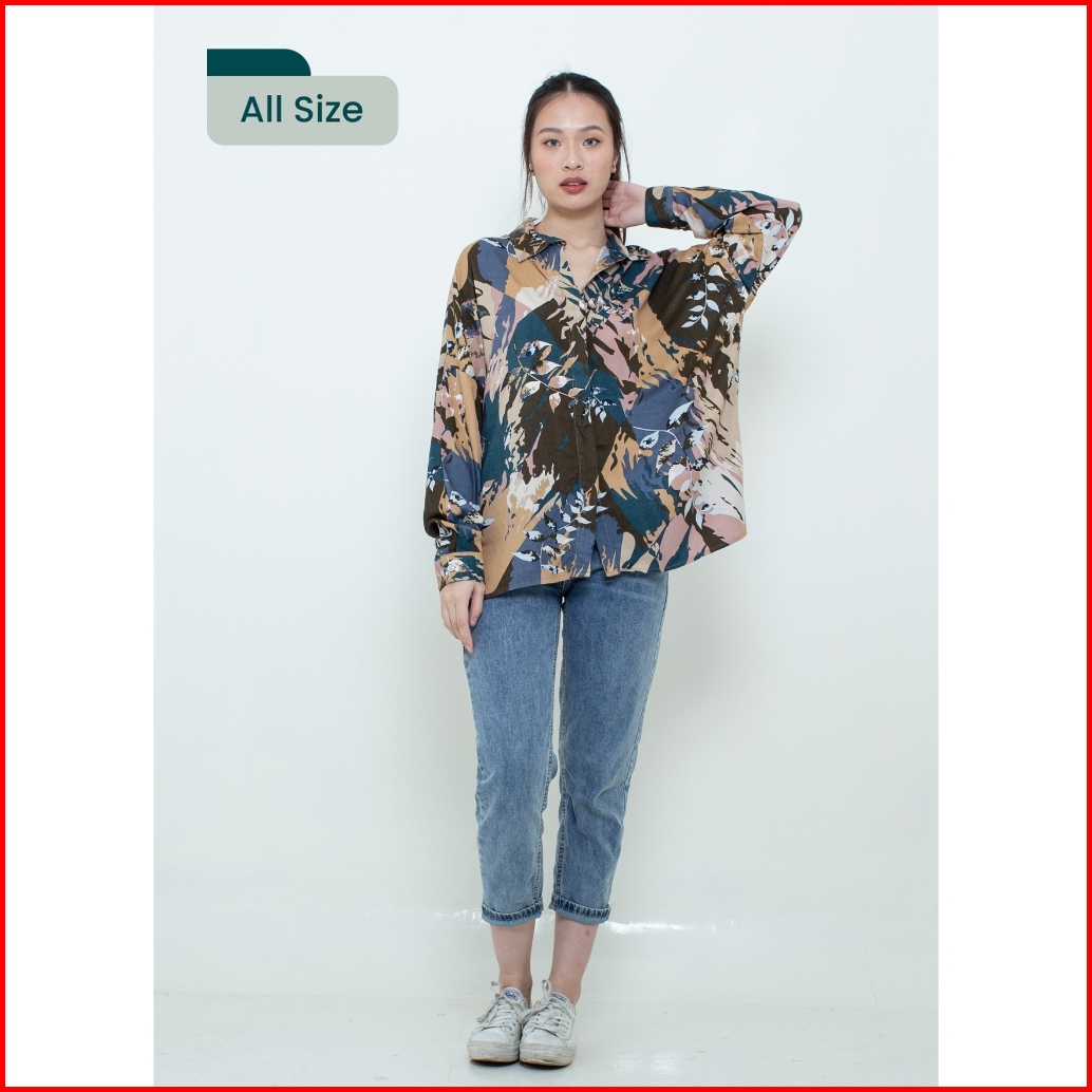 Ixora Najla Oversized Shirt - Kemeja Wanita Oversized Blouse Berkancing