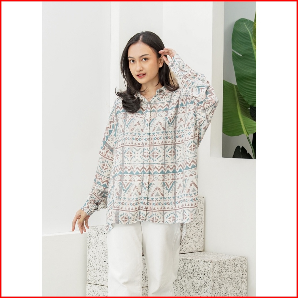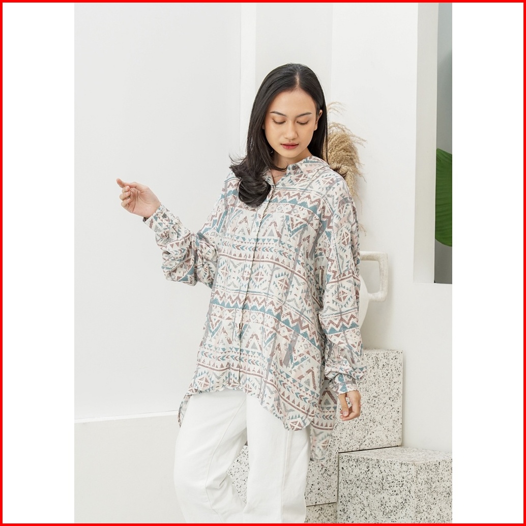 Ixora Hyun Oversized Shirt - Kemeja Wanita Oversized Blouse Berkancing