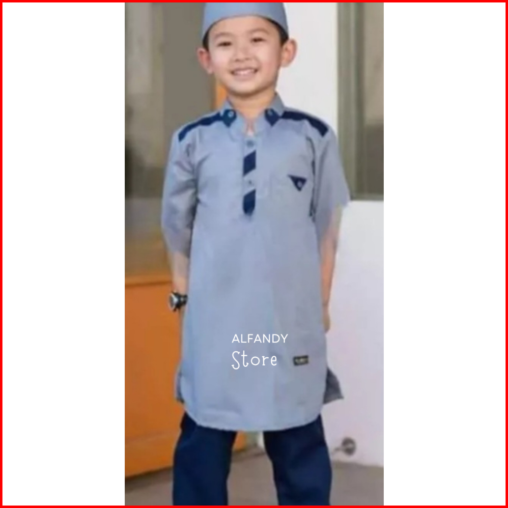 Baju Koko Anak Laki Laki Terbaru Bahan Poli Katun Adem Murah Bonus Peci Usia 3-14 Tahun