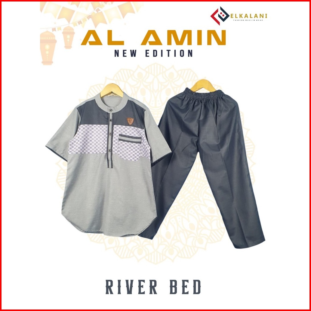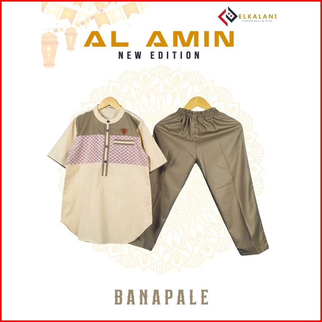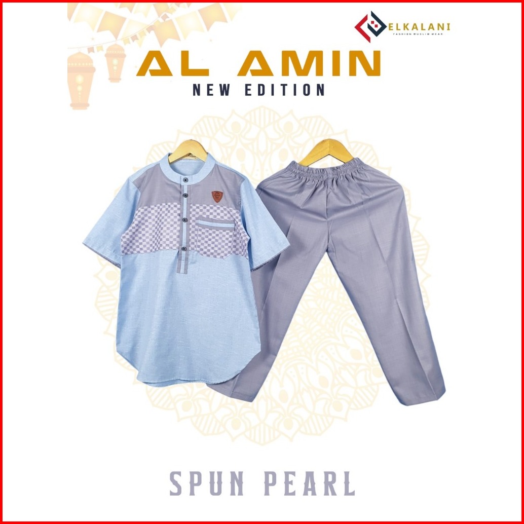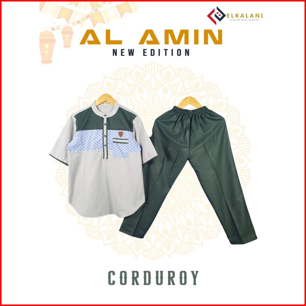 Kurta Al-amin Setelan Kurta Anak Motif Lengan Pendek Usia 4-13 Tahun