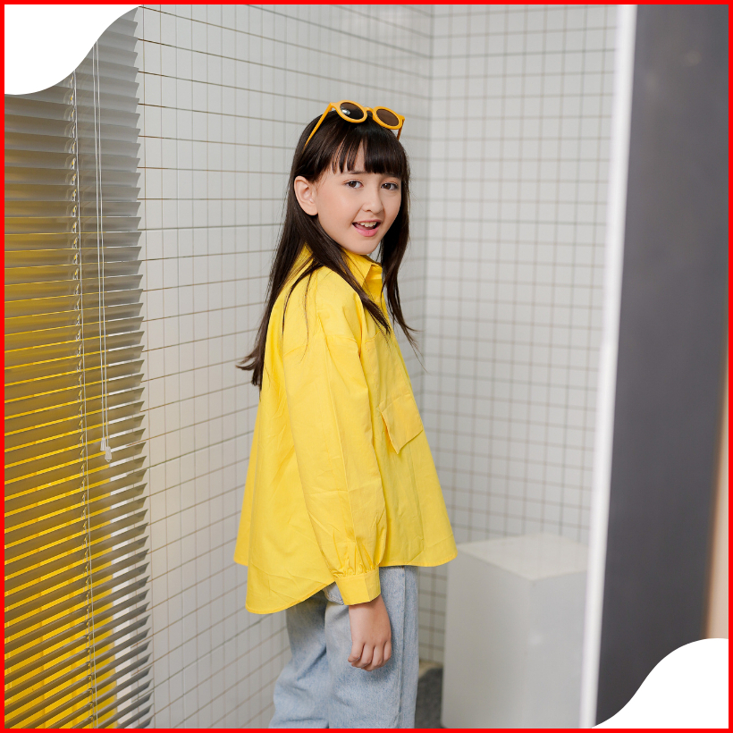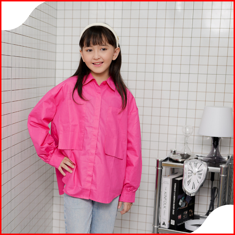 Kemeja Anak Perempuan Oversized Poplin Kantong Chubbydut
