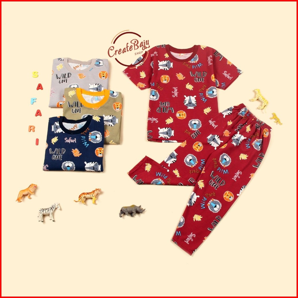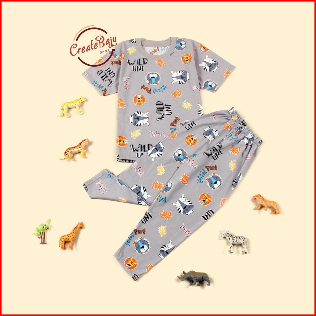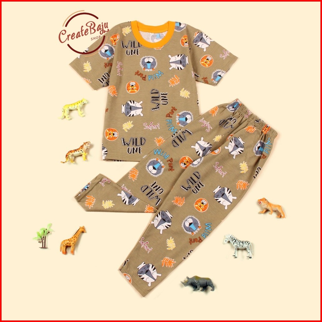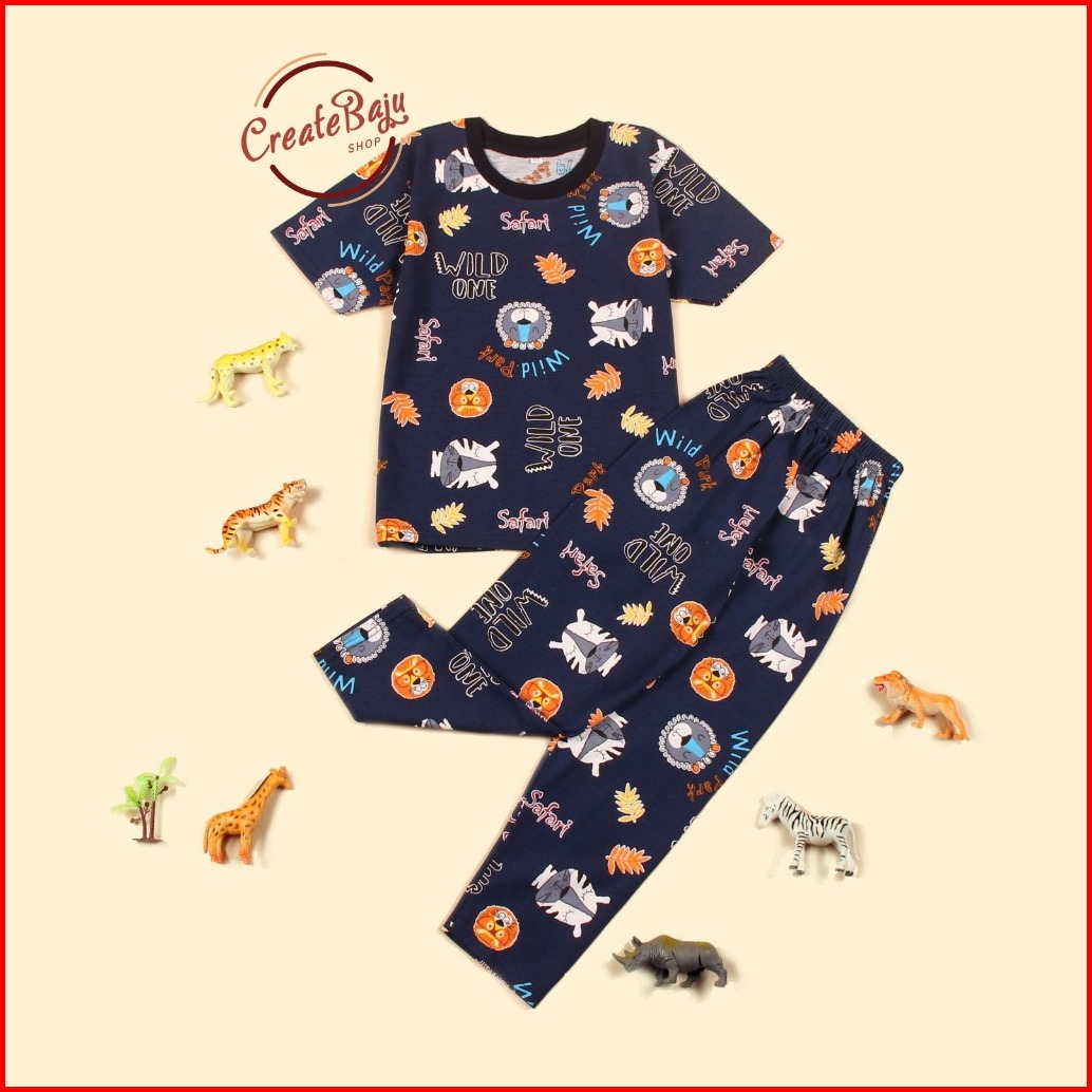 Cp Setelan Anak Laki 1-7 Tahun Wild Park Baju Tidur Anak Lengan Pendek Terlaris