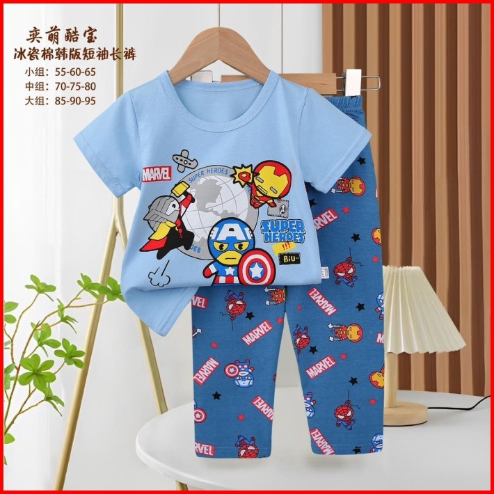 Baju Piyama Anak Laki-laki Kubao Berkarakter Kaos Lengan Pendek Celana Panjang