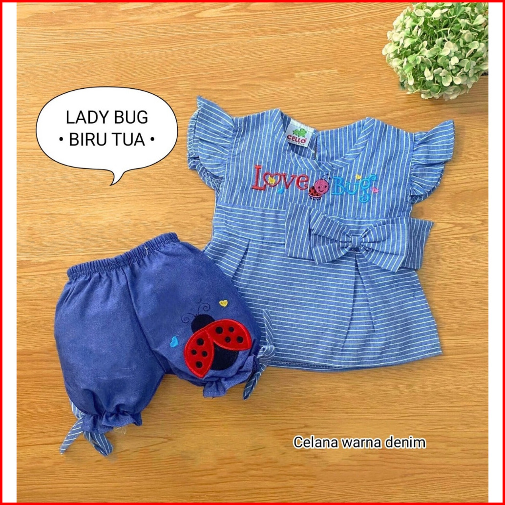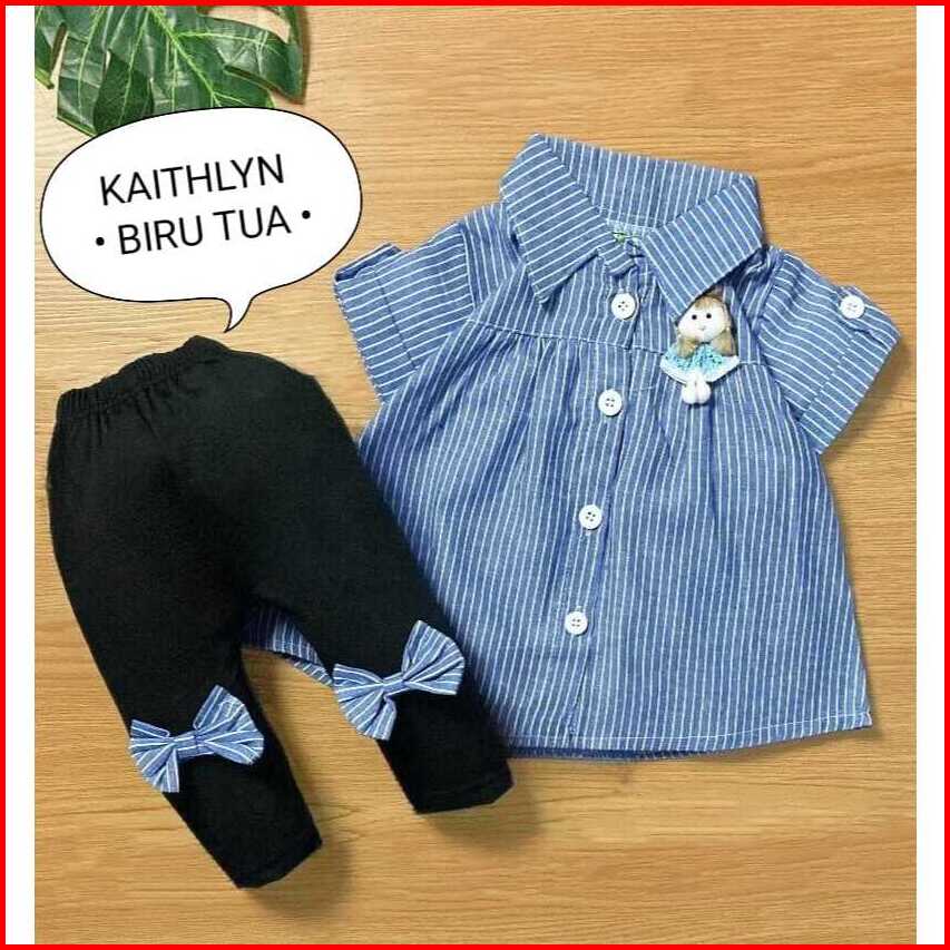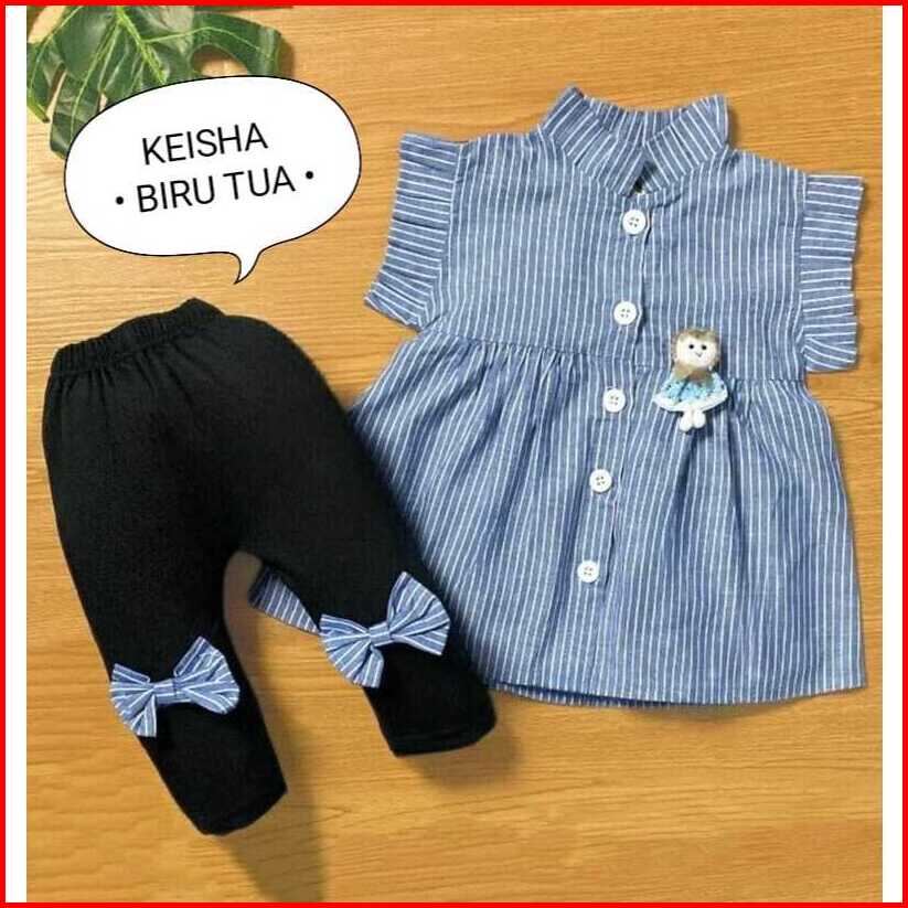 Setelan Baju Anak Perempuan Baju Bayi Cewek Atasan Lengan Pendek Dan Celana Panjang Motif Keisha Denim Usia 0-6 Bulan