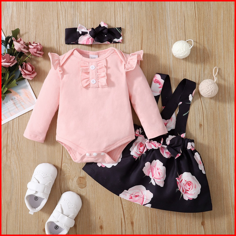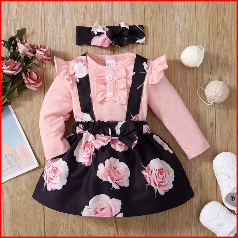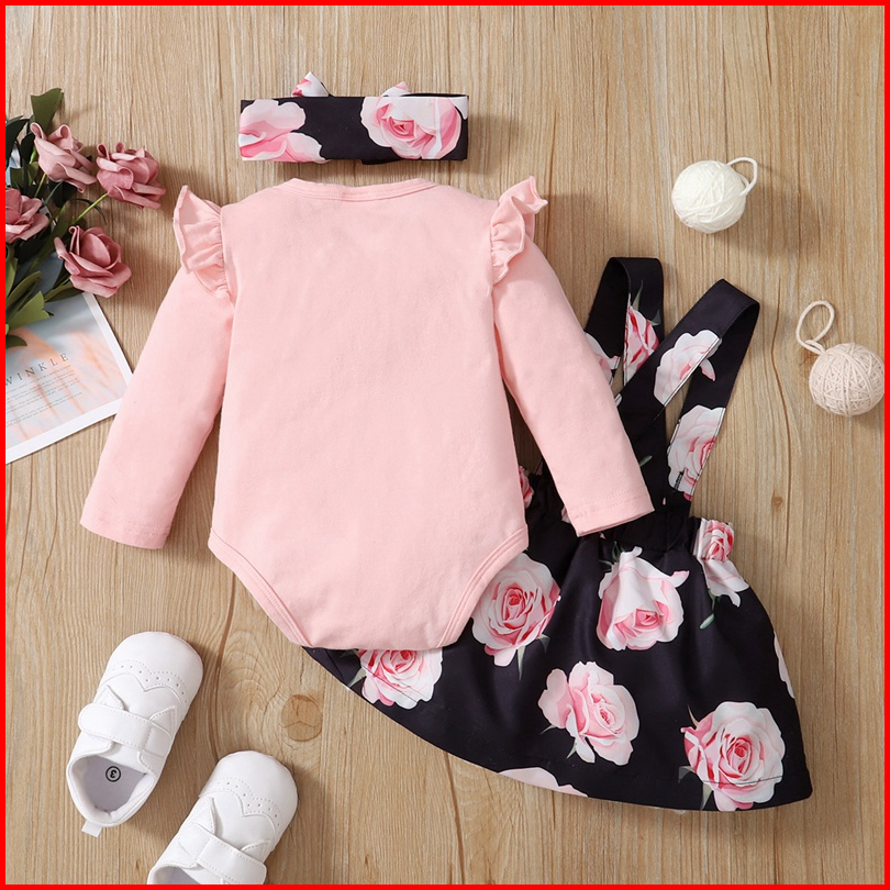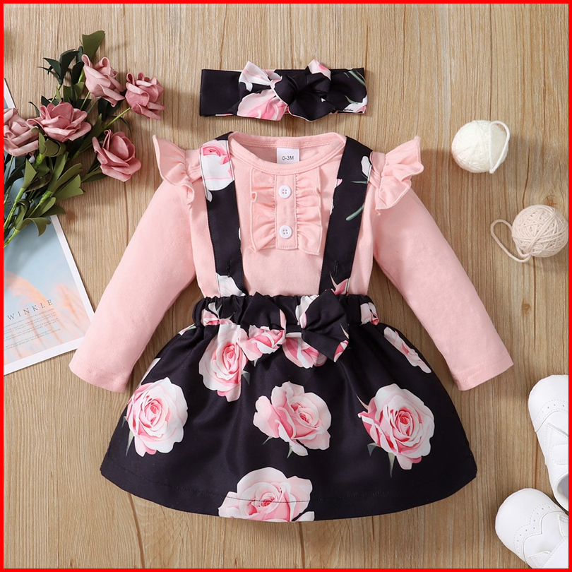 Baju Baby Girl 0-18 Months 3pcs Newborn Baby Girls Spring Outfit Set Fly Long Sleeves Cotton Romper Beautiful Rose Flowe