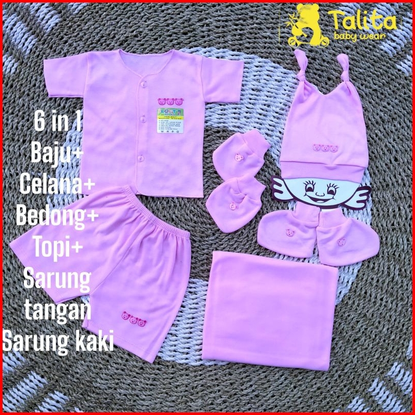 Set Lengkap Baju Bayi Baru Lahir Perempuan Lengan Pendek Paket Hemat 6 Pcs Talitababywear