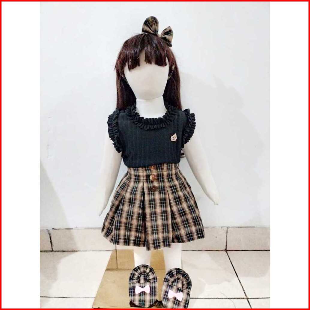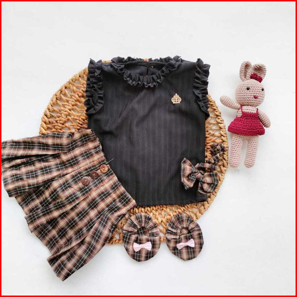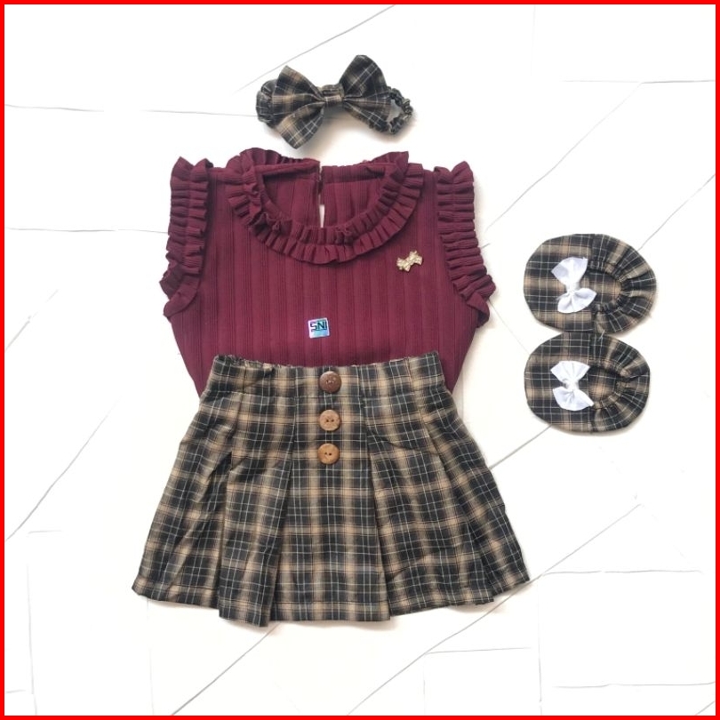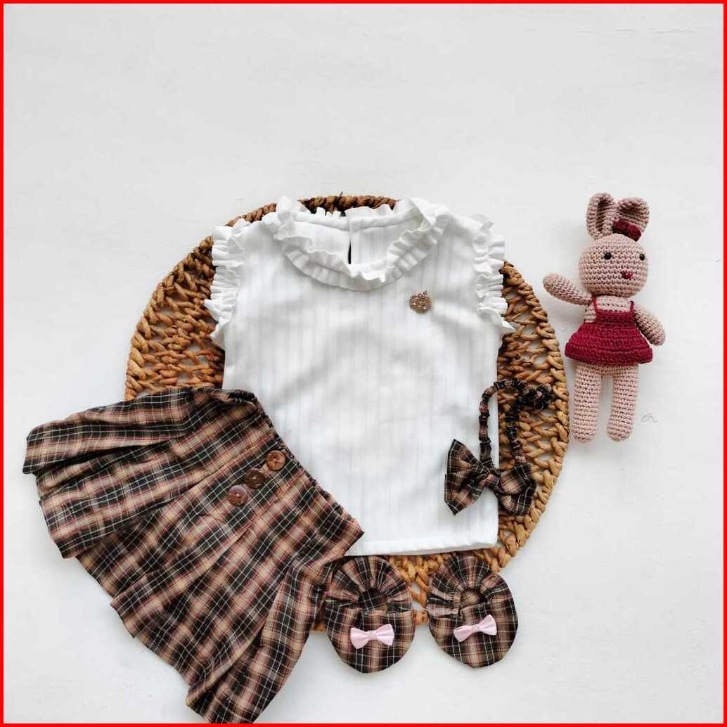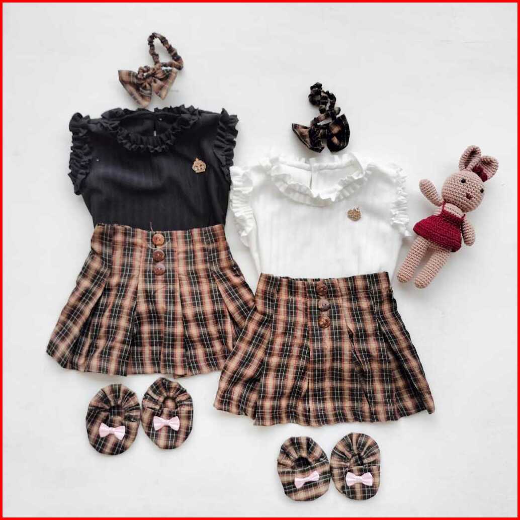 Baju Anak Bayi Perempuan Setelan Rok Kotak Tartan Skirt 3-9 Bulan Set Baby Girl Cewek Lucu Korean Style