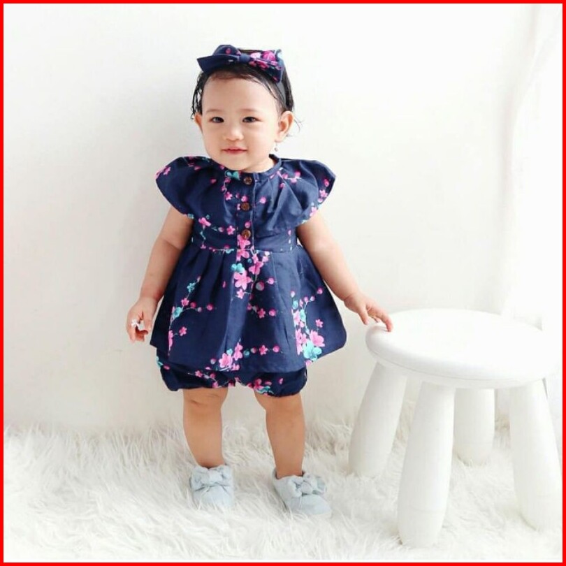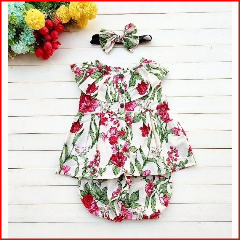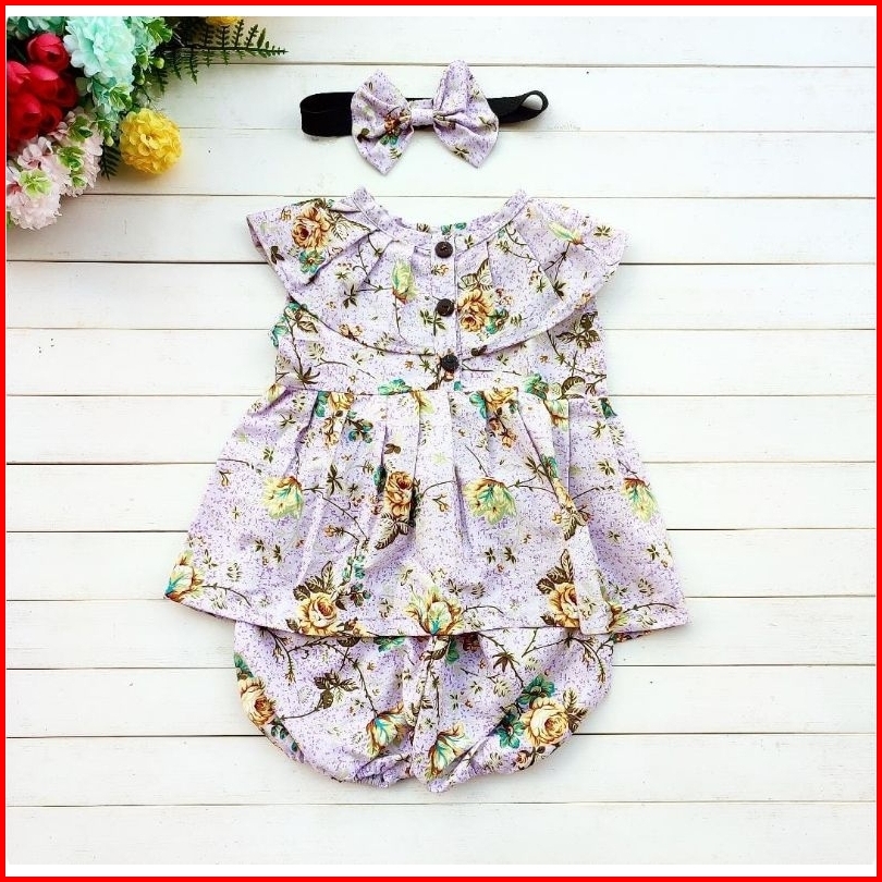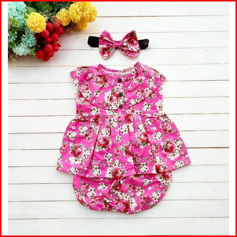 1 Set Setelan Baju Bayi Peplum 0-12bulan Free Bando
