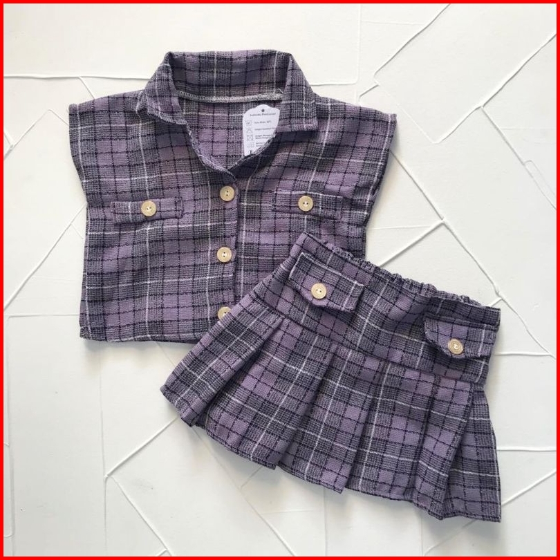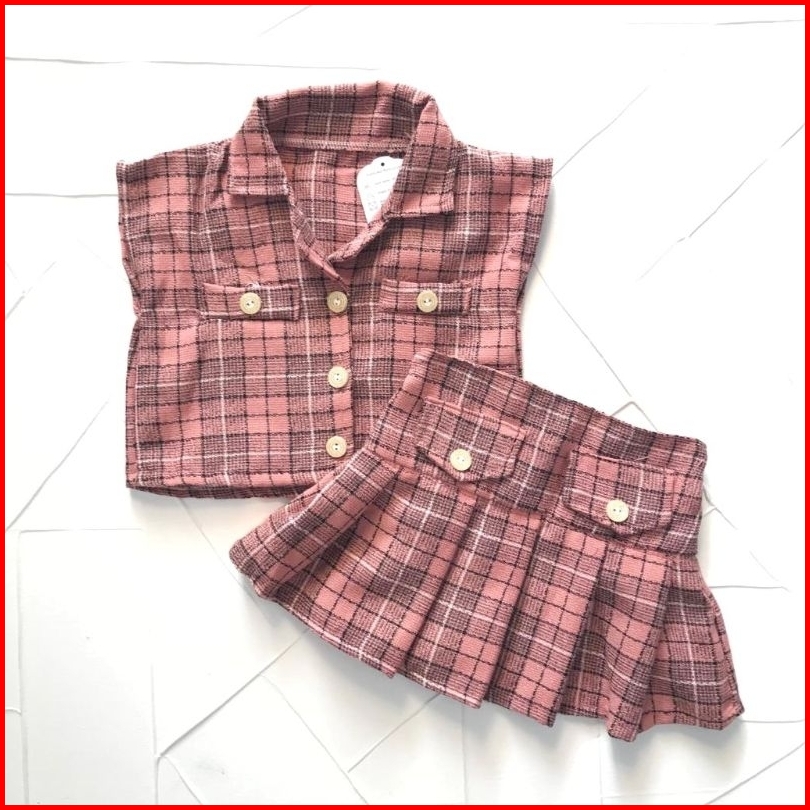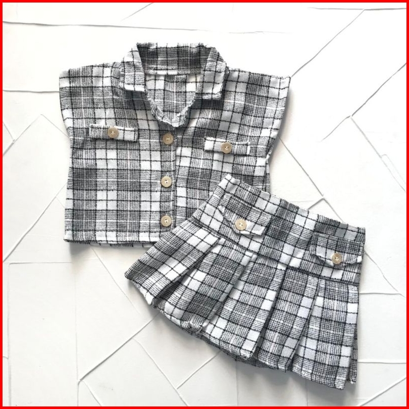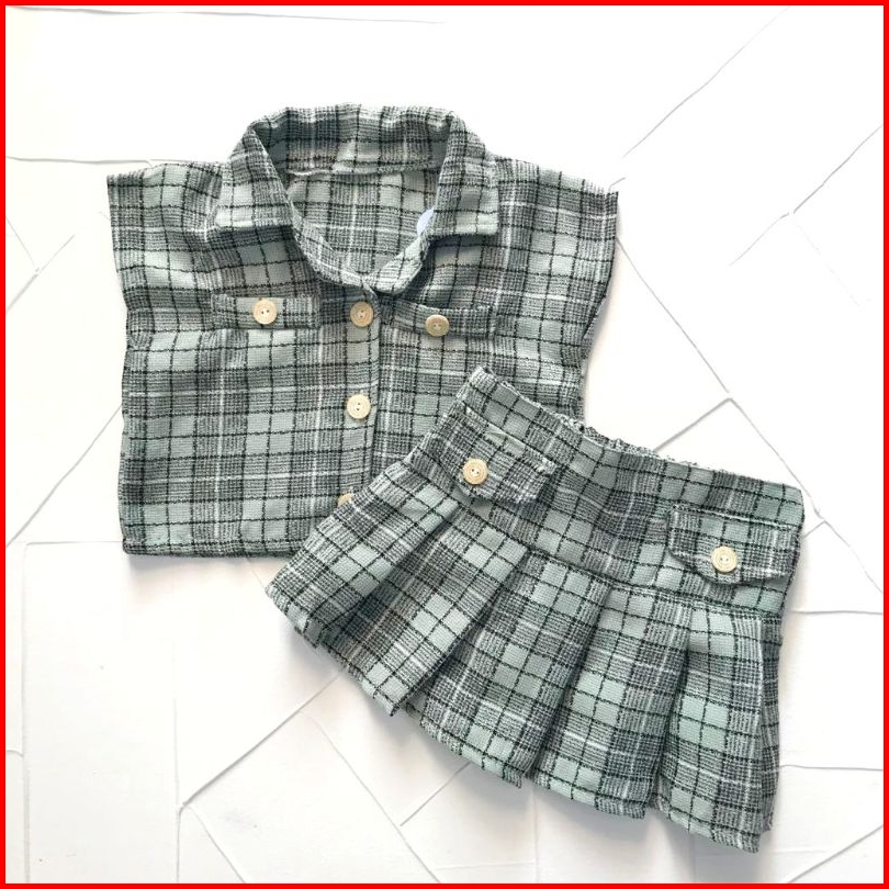 Baju Anak Bayi Perempuan Setelan Rok Tartan 3-9 Bulan Tweed One Set