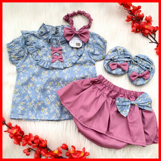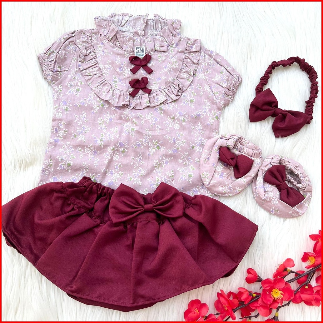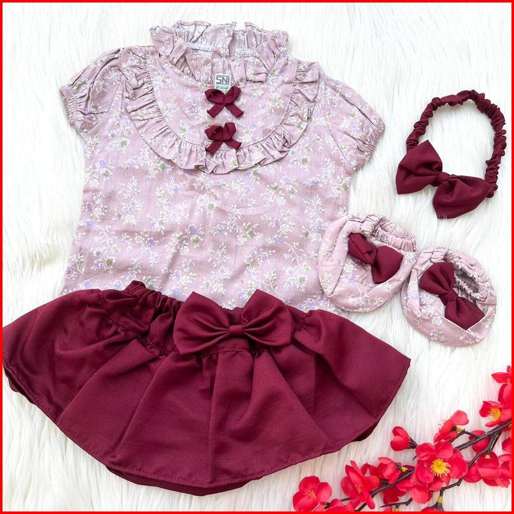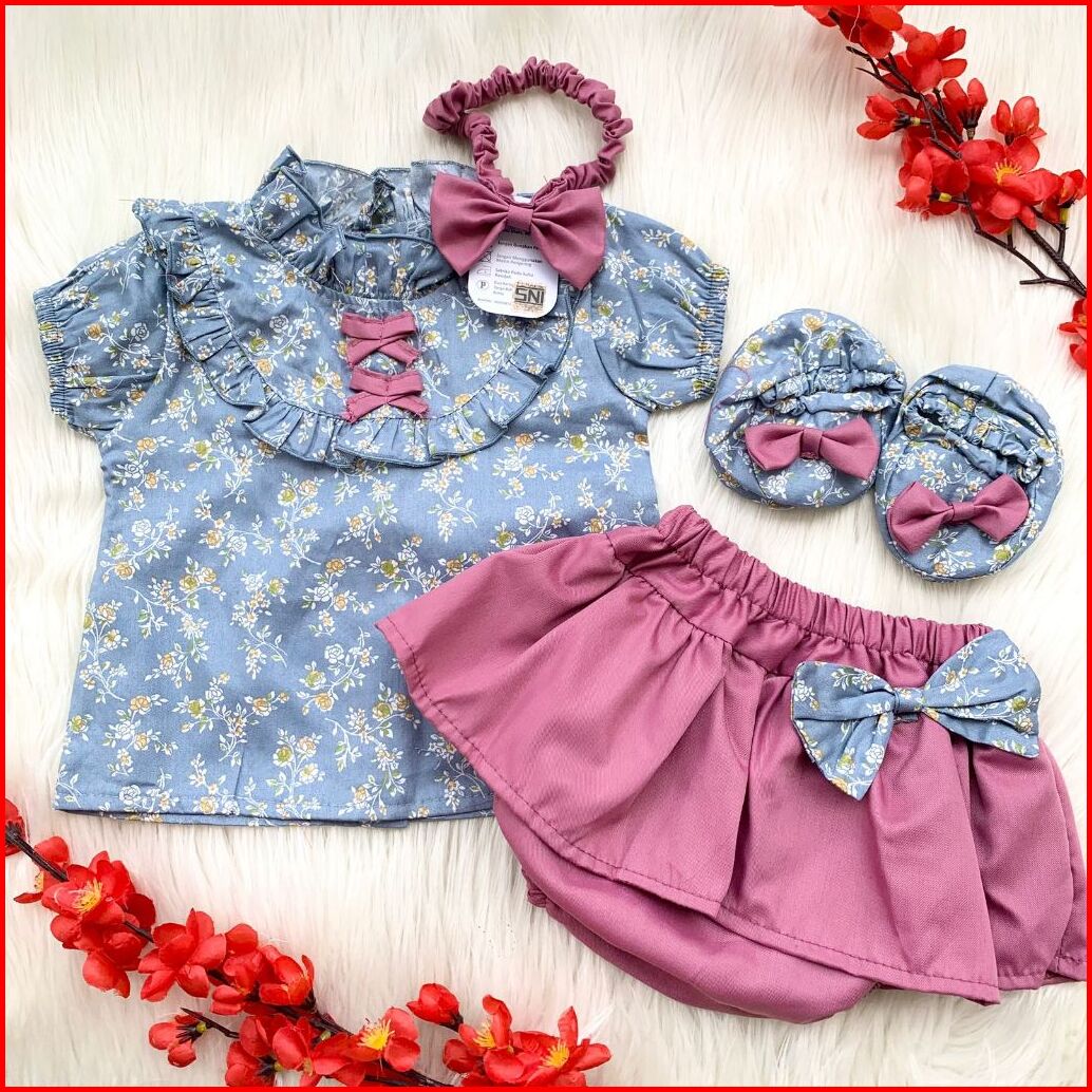 Baju Setelan Baju Rok Bandana Sepatu Motif Lucu Bestseller Fashion Anak Bayi Cewek Perempuan Baby Girl Murah -car