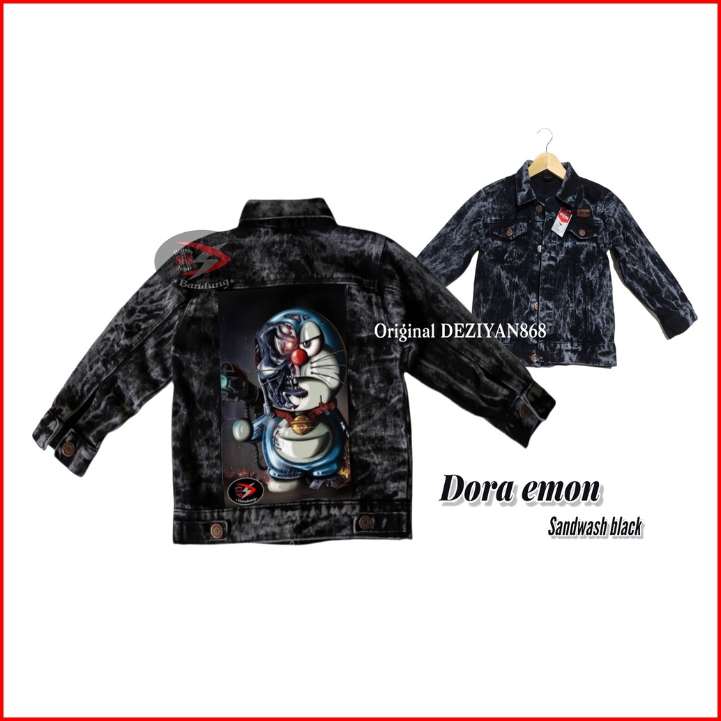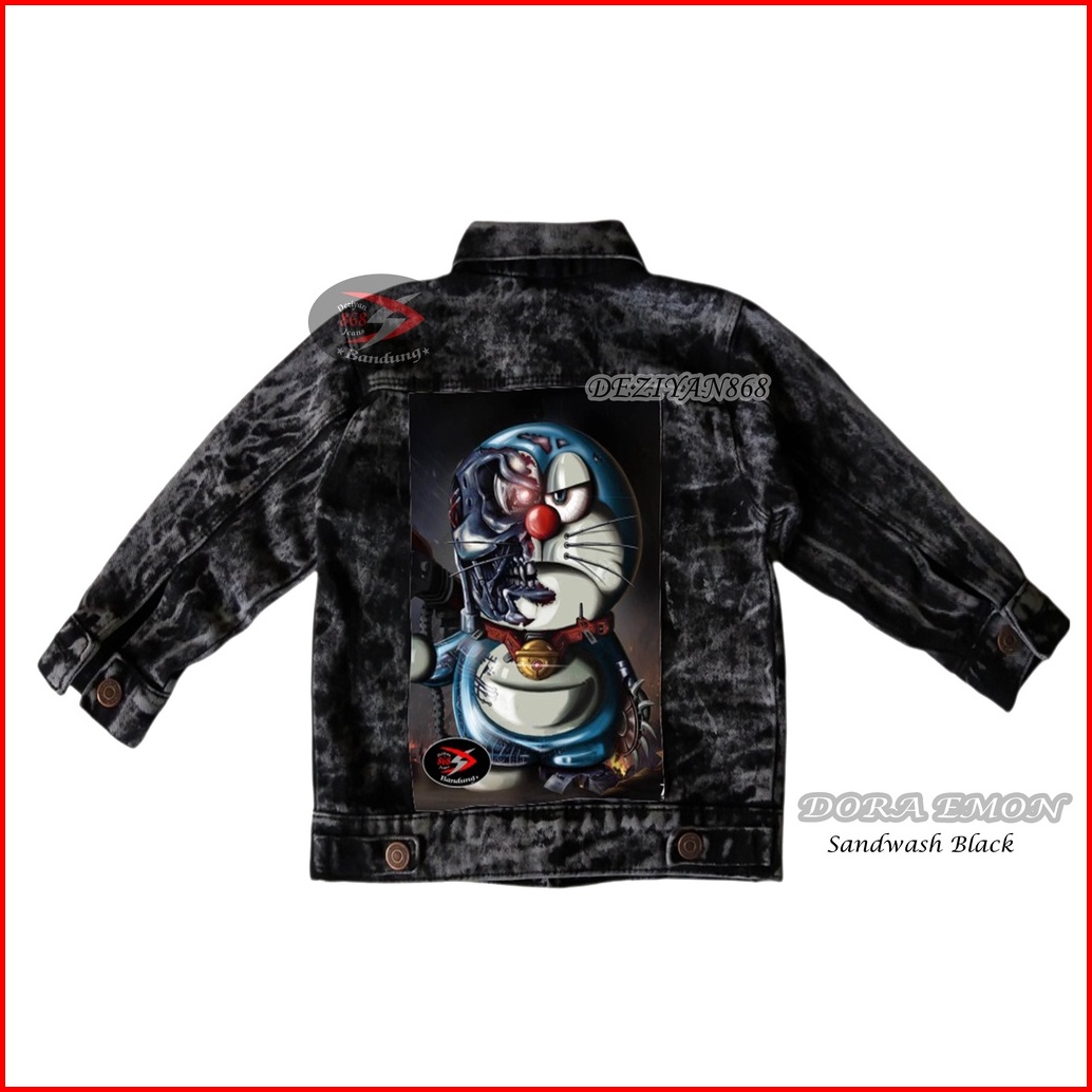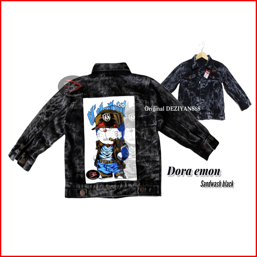 Deziyan868 Jaket Anak Printing Sandwash Black Jaket Jeans Terbaru Gambar Dora Emon Nobita Spengebob