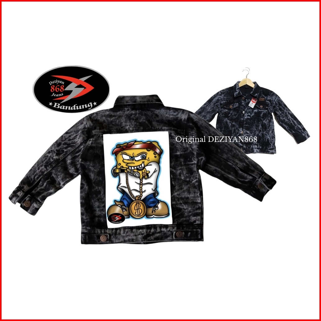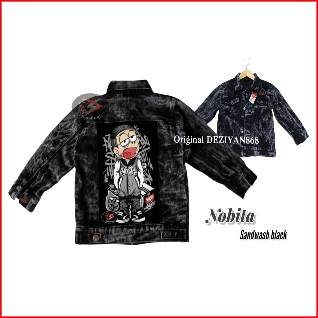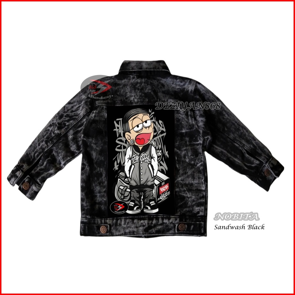 Deziyan868 Jaket Anak Printing Sandwash Black Jaket Jeans Terbaru Gambar Dora Emon Nobita Spengebob