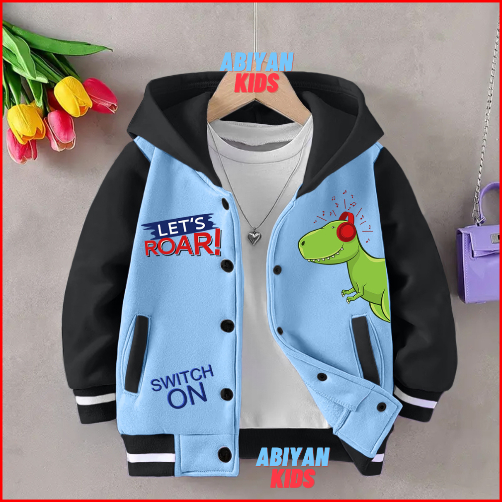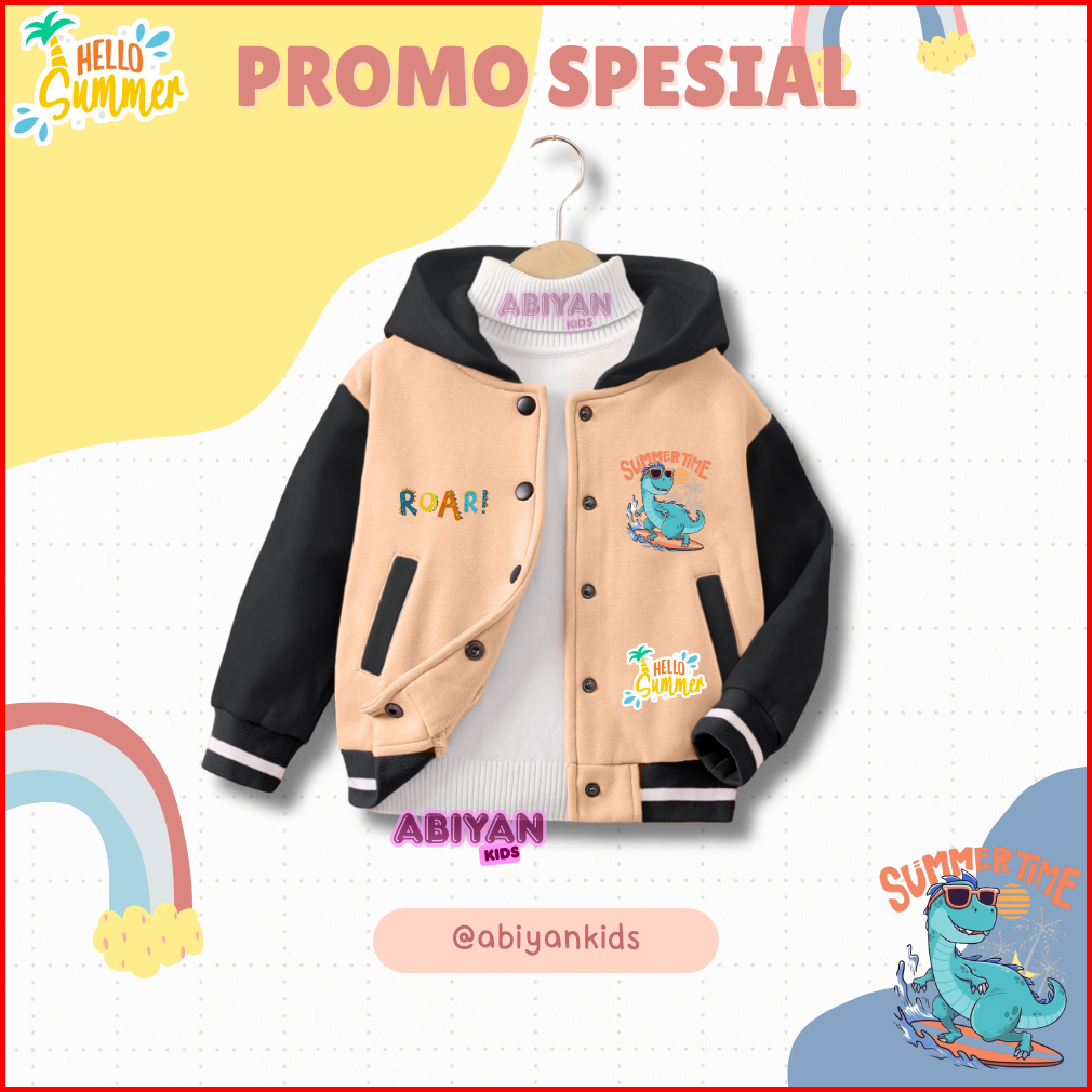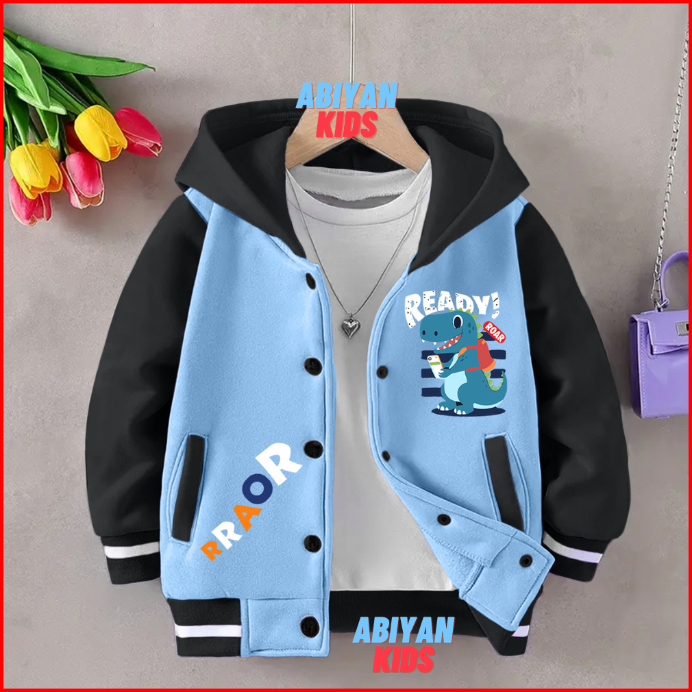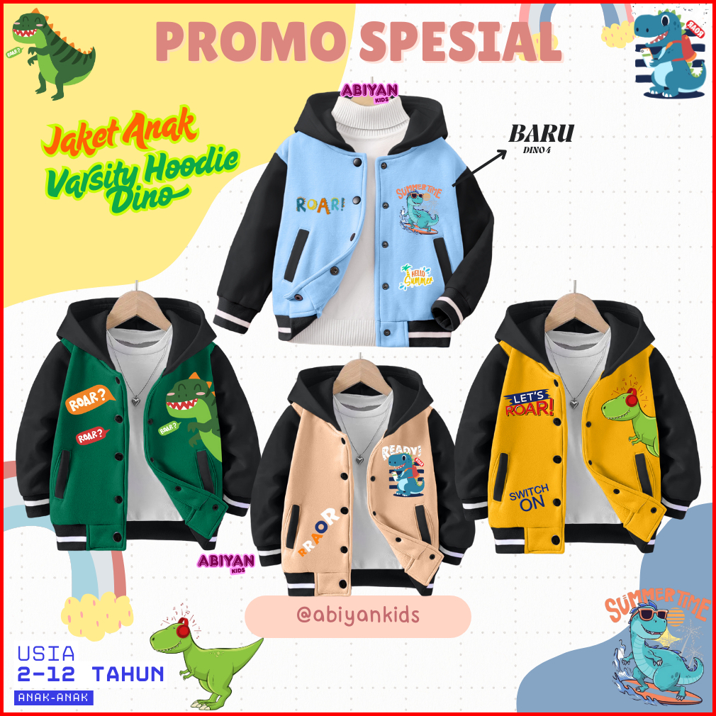 Jaket Anak Varsity Hoodie Dino Usia 2-12 Tahun Laki-laki Terbaru Terpopuler