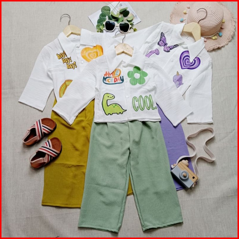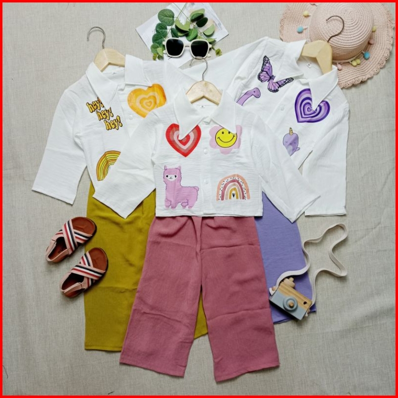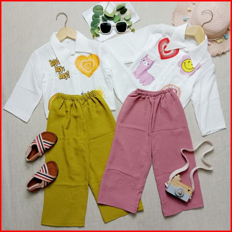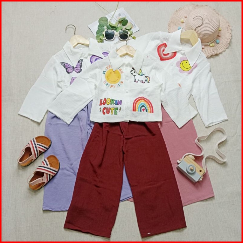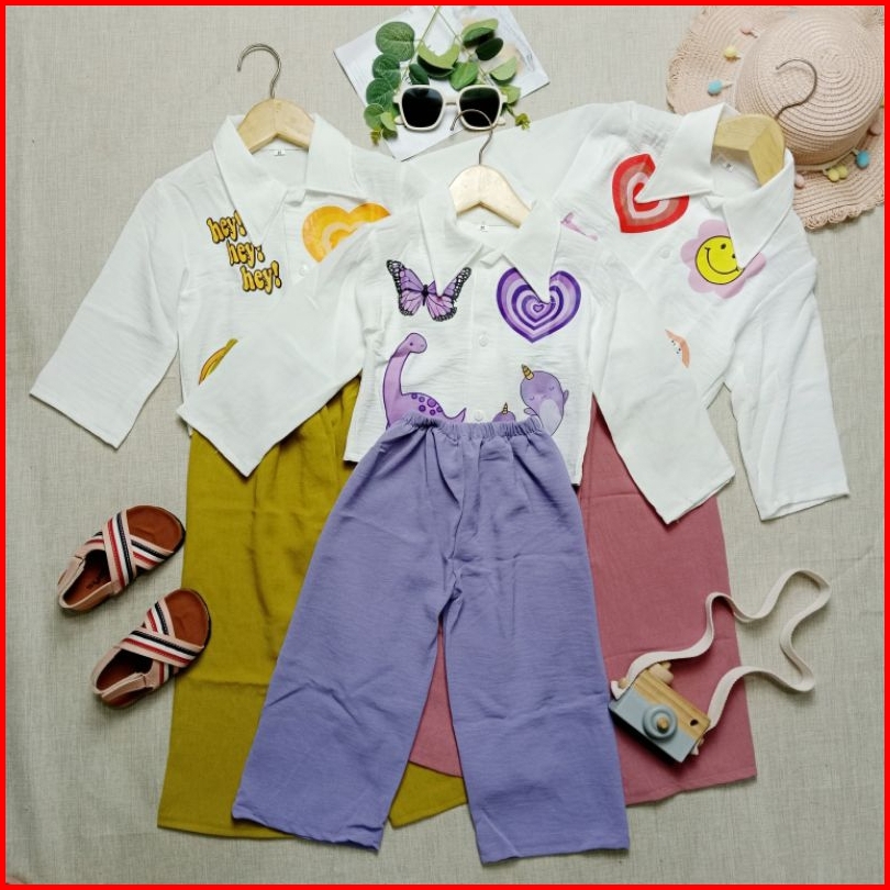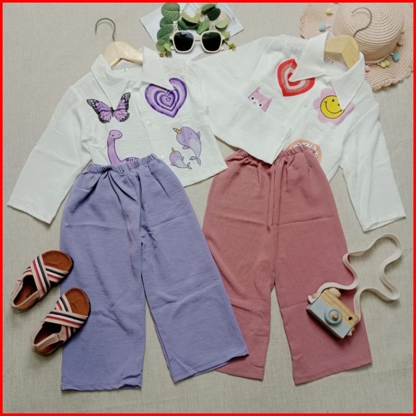 Baju Viral Setelan Anak Perempuan Crop Top Emoji Crinkle Dtf Baju Kemeja Anak Cewe Bahan Crinkle