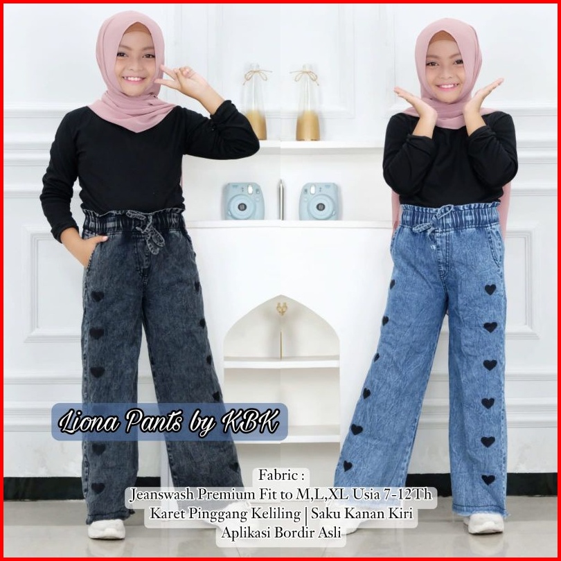 Kulot Panjang Anak Perempuan Celana Jeans Bordir Usia 7 Sampai 12tahun