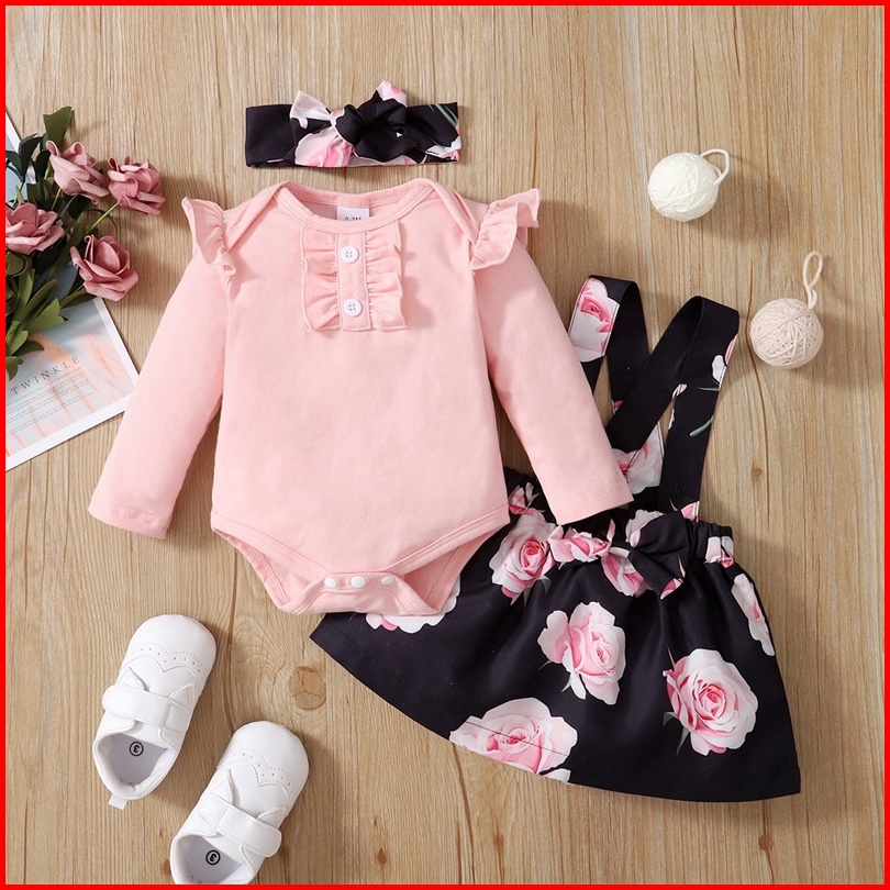 Haasya Kids 0-18 Months Baju Baby Girl 3pcs Newborn Baby Girls Spring Outfit Set Fly Long Sleeves Cotton Romper Beautifu