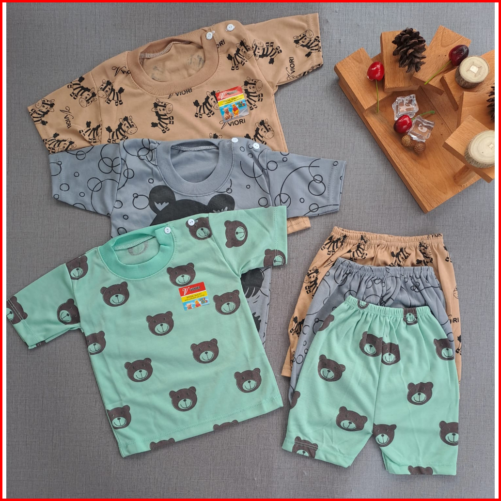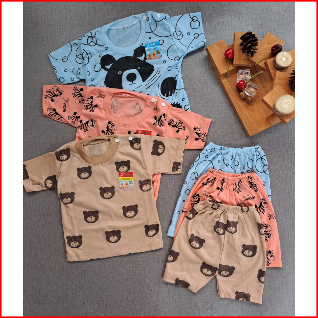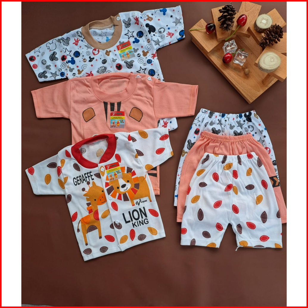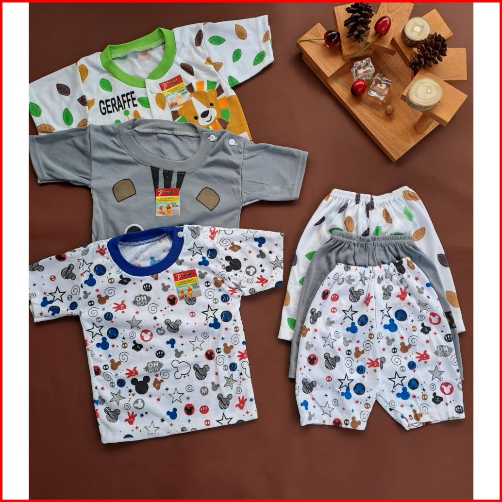 Paketan Hemat Santuy Setelan Baju Bayi 3-18 Bulan Laki Laki Perempuan 3 Pcs Motif Random