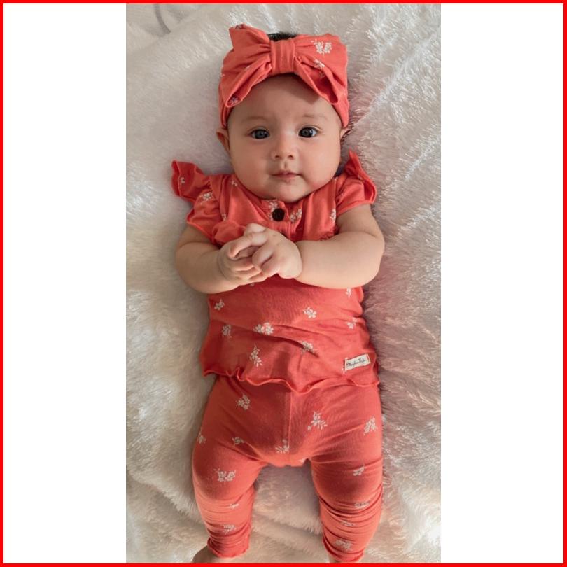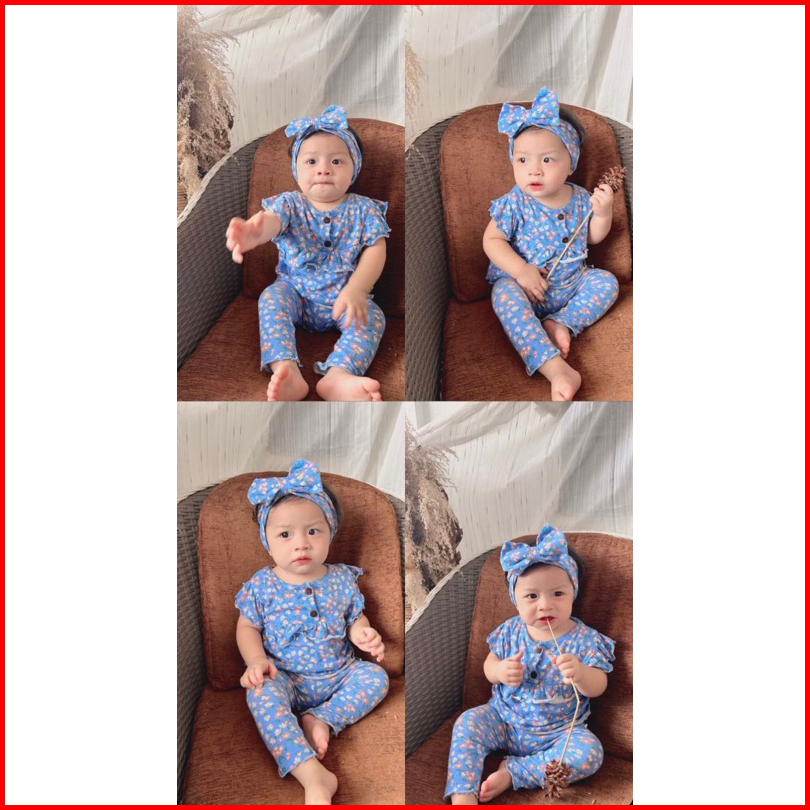Qairin Oneset Setelan Baju Celana Bayi Mybee Maybee Free Bandana Headband Pita