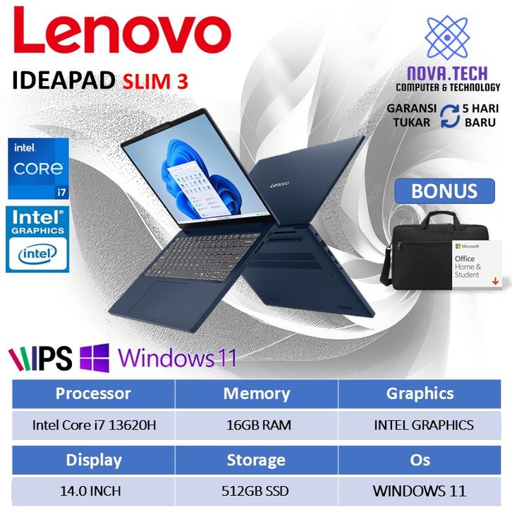 Lenovo Ideapad slim 3 Laptop core i7 13620H Ram 16gb 512gb Ssd 14.0 W11+OHS Gen 13th