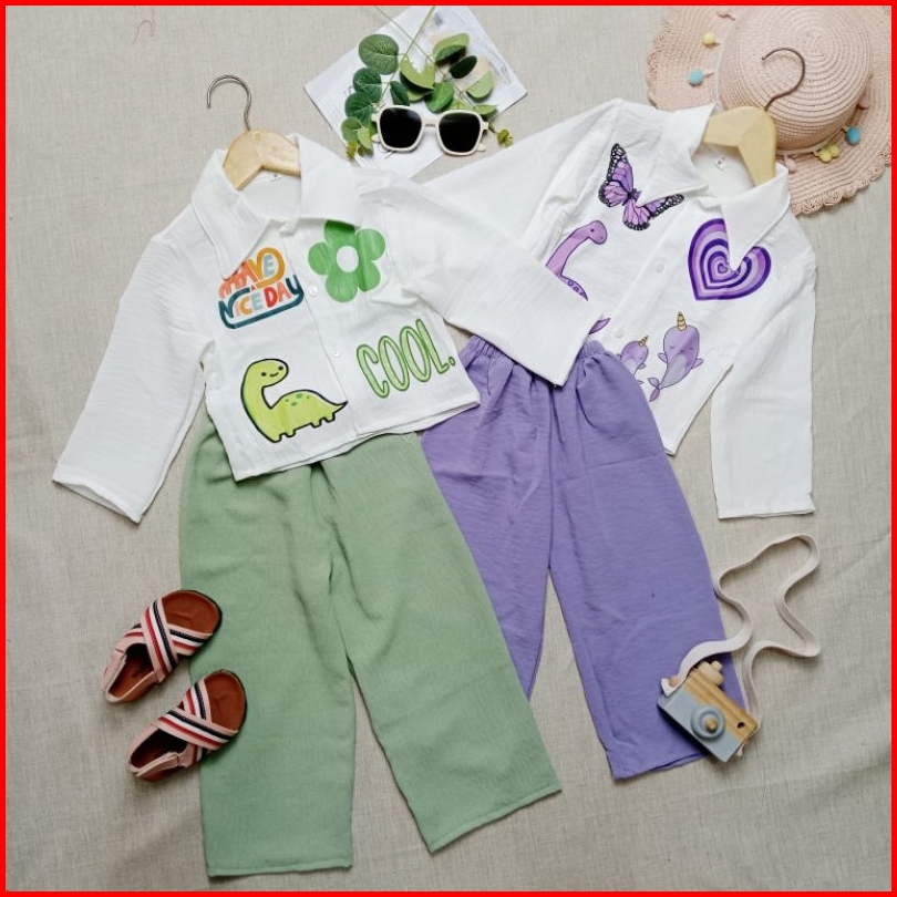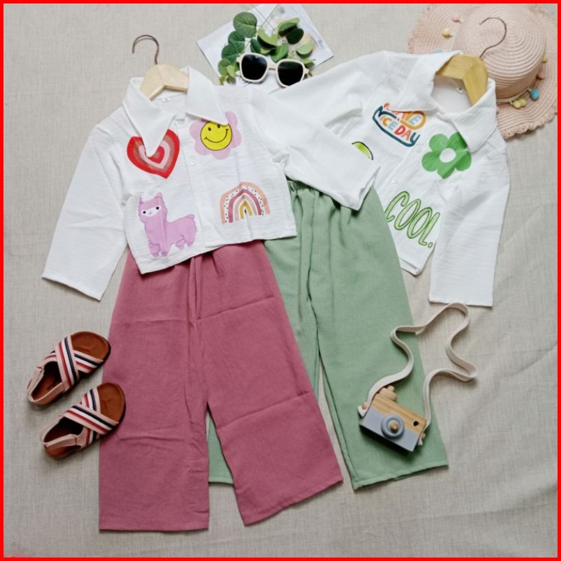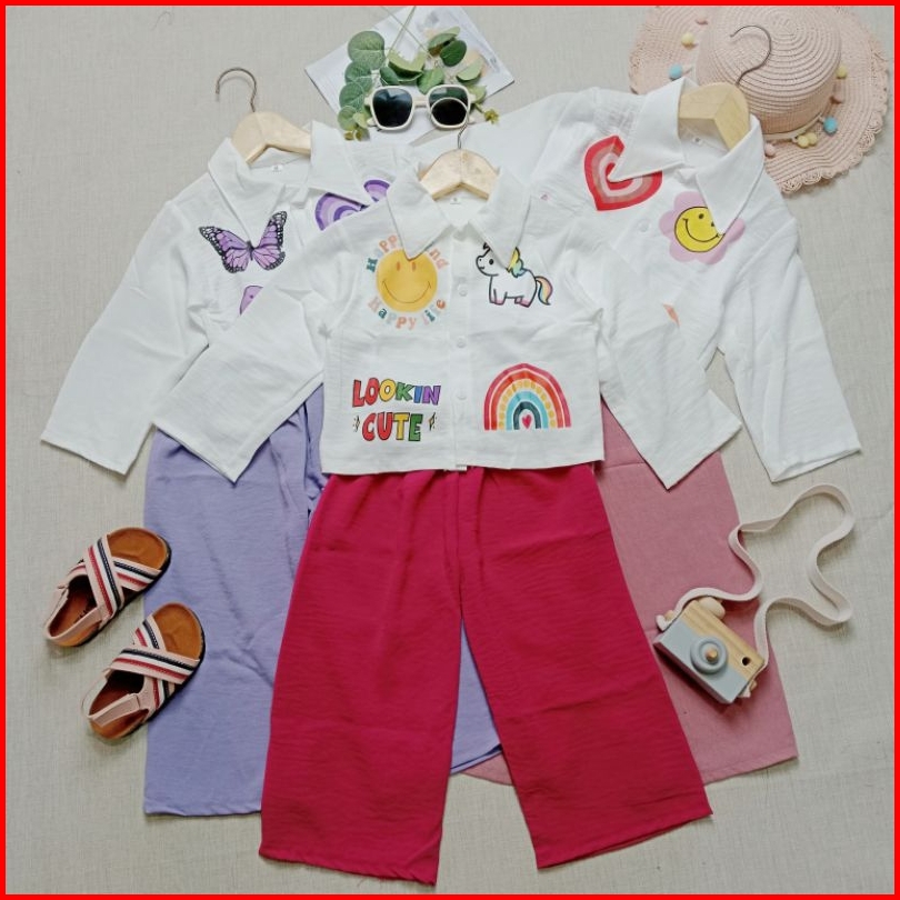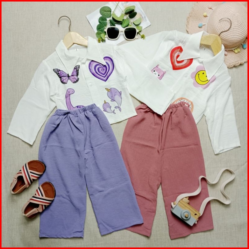 Baju Setelan Anak Viral Crop Top Emoji Dtf Kemeja Anak Perempuan Crinkle Airflow
