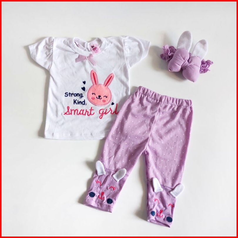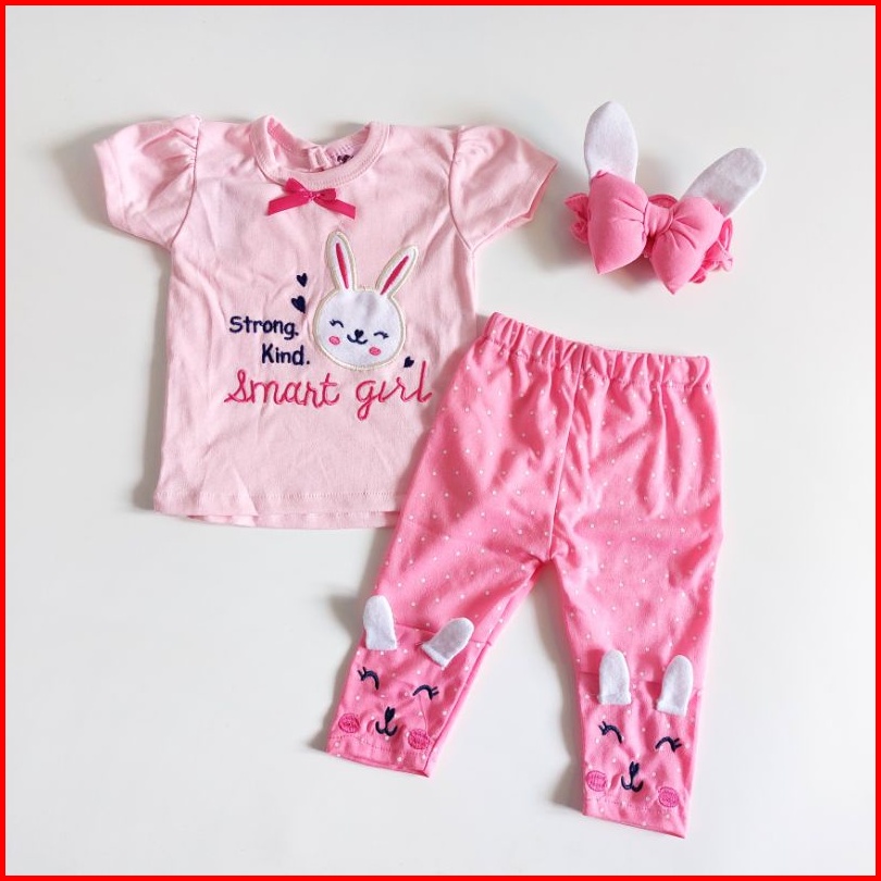 Baju Bayi Perempuan Setelan Celana Bunny 0-8 Bulan Baby Girl Lucu Set Bando Pergi Jalan Fashion Anak Cewek Legging