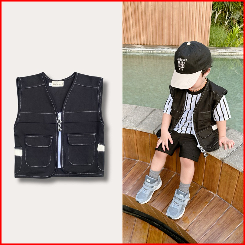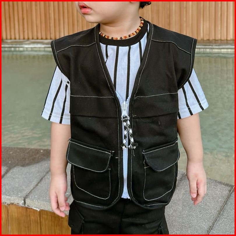 Lemoolen - Dio Vest Kids Denim Unisex Baju Rompi Anak Vest Korean Murah