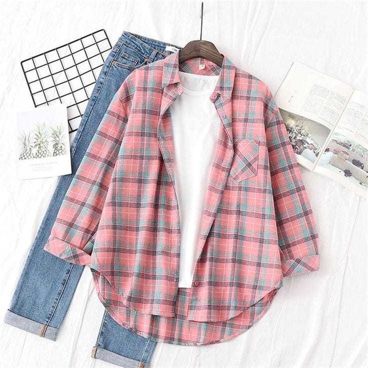 Kemeja flanel pria dan wanita lengan panjang motif kotak-kotak kualitas premium xxx