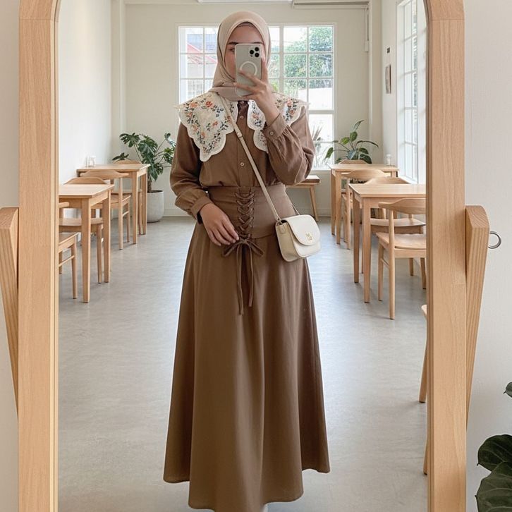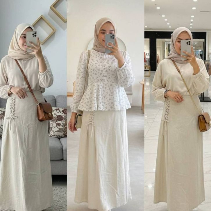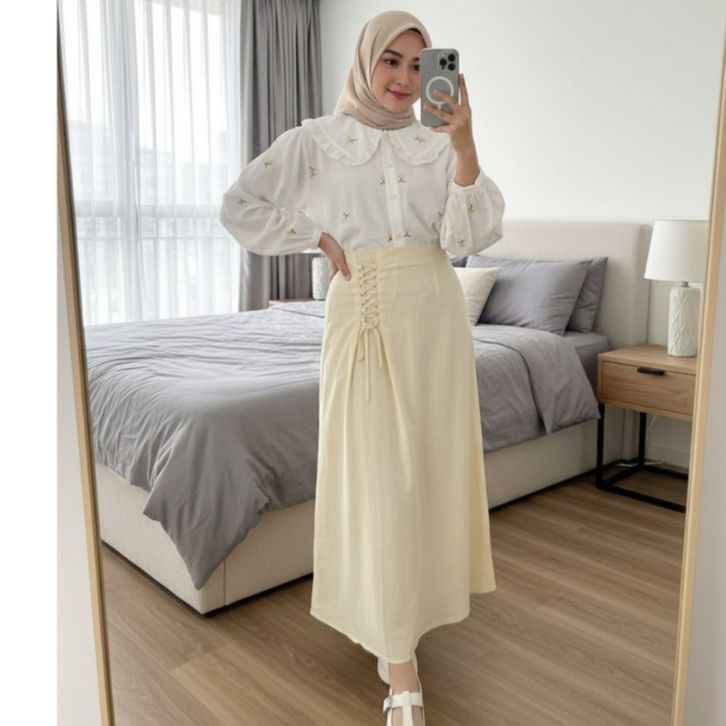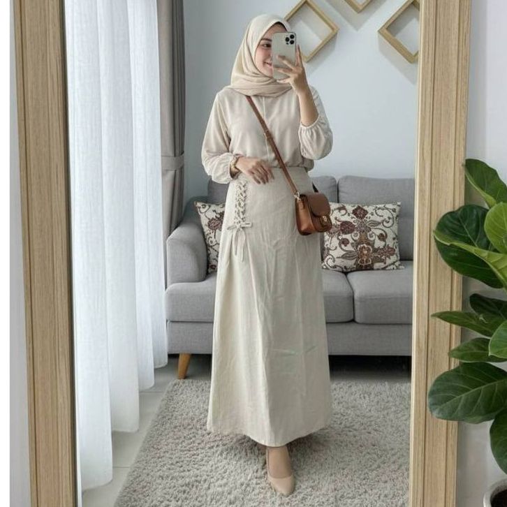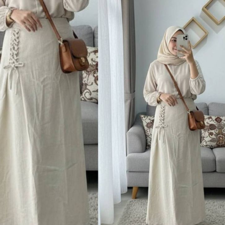 Rok Wanita Santika Korean Style Serut Linen Premium Kekinian Model Terbaru Elegan Nyaman Harian