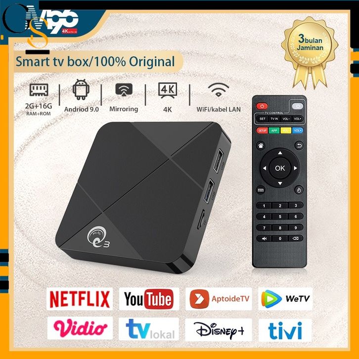 Android Tv Box MiniQ3 Smart Media 2G Ram 16G Rom 2.4G Wifi 4K HD Android Stb Box Tv Digital Murah Berkualitas 2024