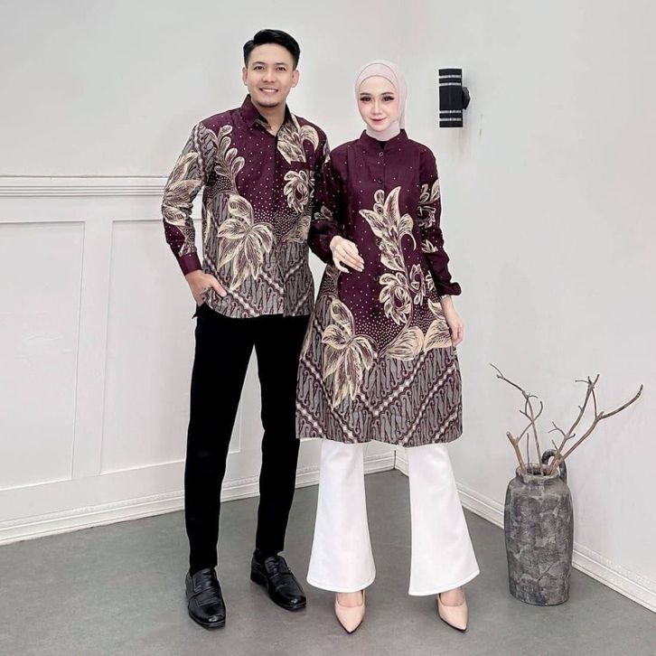 Batik Couple Modern Tunik Set Kemeja Pria Lengan Panjang Atasan Wanita Terbaru