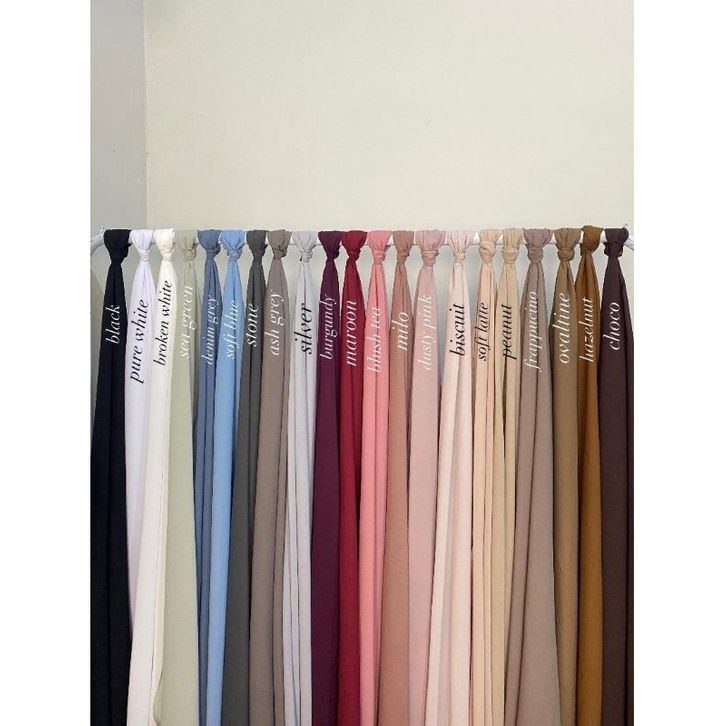 Frappucino, Black, Silver, Biscuit, Peanut, Ovaltine, Seagreen, Stone, Milo, Ash Grey, Dusty Pink, Hazelnut, Burgundy, Soft Blue, Blush, Broken White, Pure White, Choco, Maroon, Denim Grey, Navy, Macaroon, Baby Army, Kunyit/Kubus, Purple, Khaki, Latte, Moccacino, Soft Pink