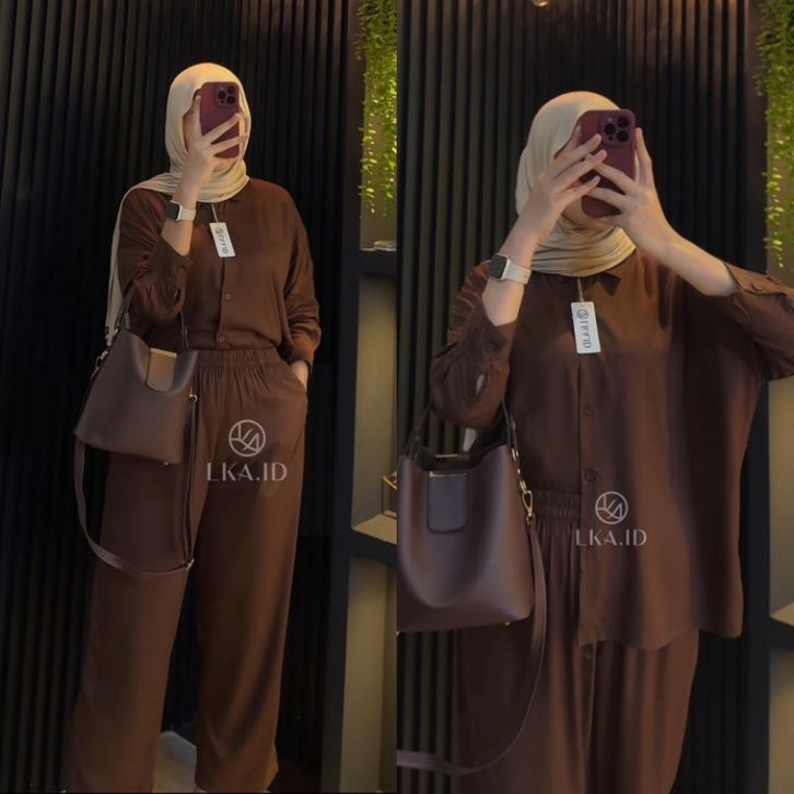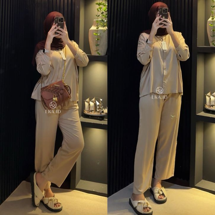 Setelan Wanita Oversize Rayon Twill Premium Kemeja Kulot LKA