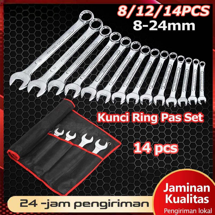 Kunci Ring 14PCS Tool Pas set 8-24mm kunci kombinasi Combination Wrench Superman Kunci Ring kuat dan kokoh