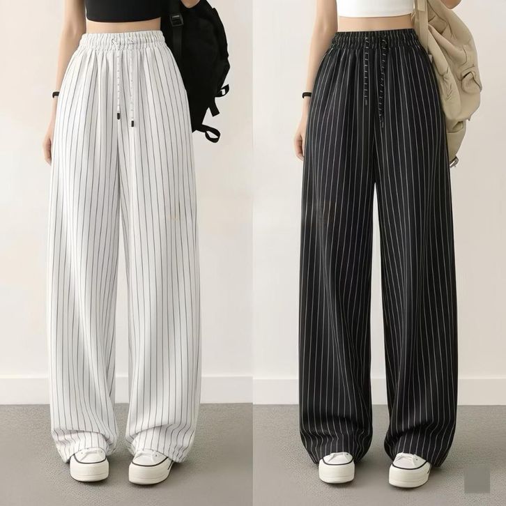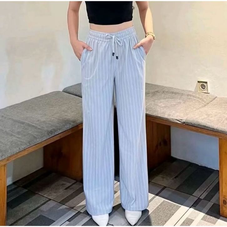 Celana Panjang Wanita Baggy Motif Garis Pinstripe Nyaman Stylish