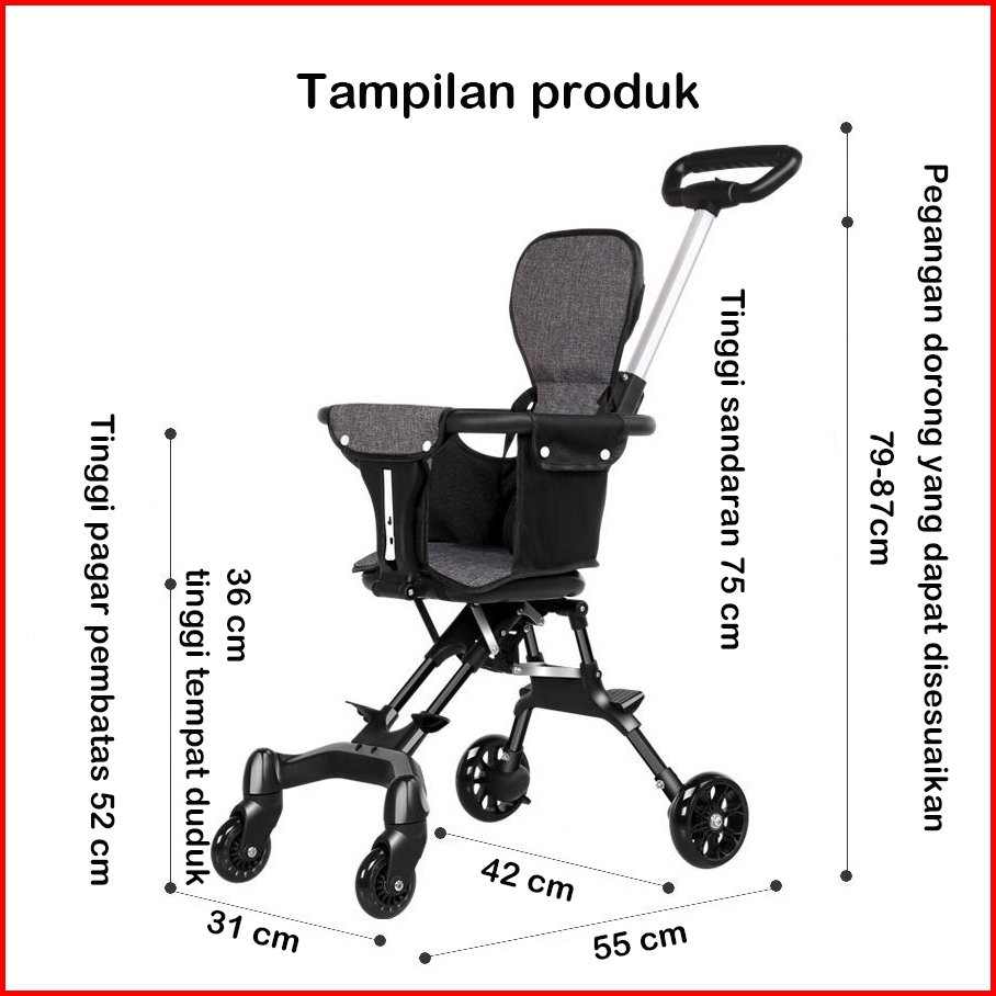 Bosc Stroller Bayi 2 Way Travelling Anak Portable Dapat Dilipat Ringan Sepeda Motor Dapat Dibawa